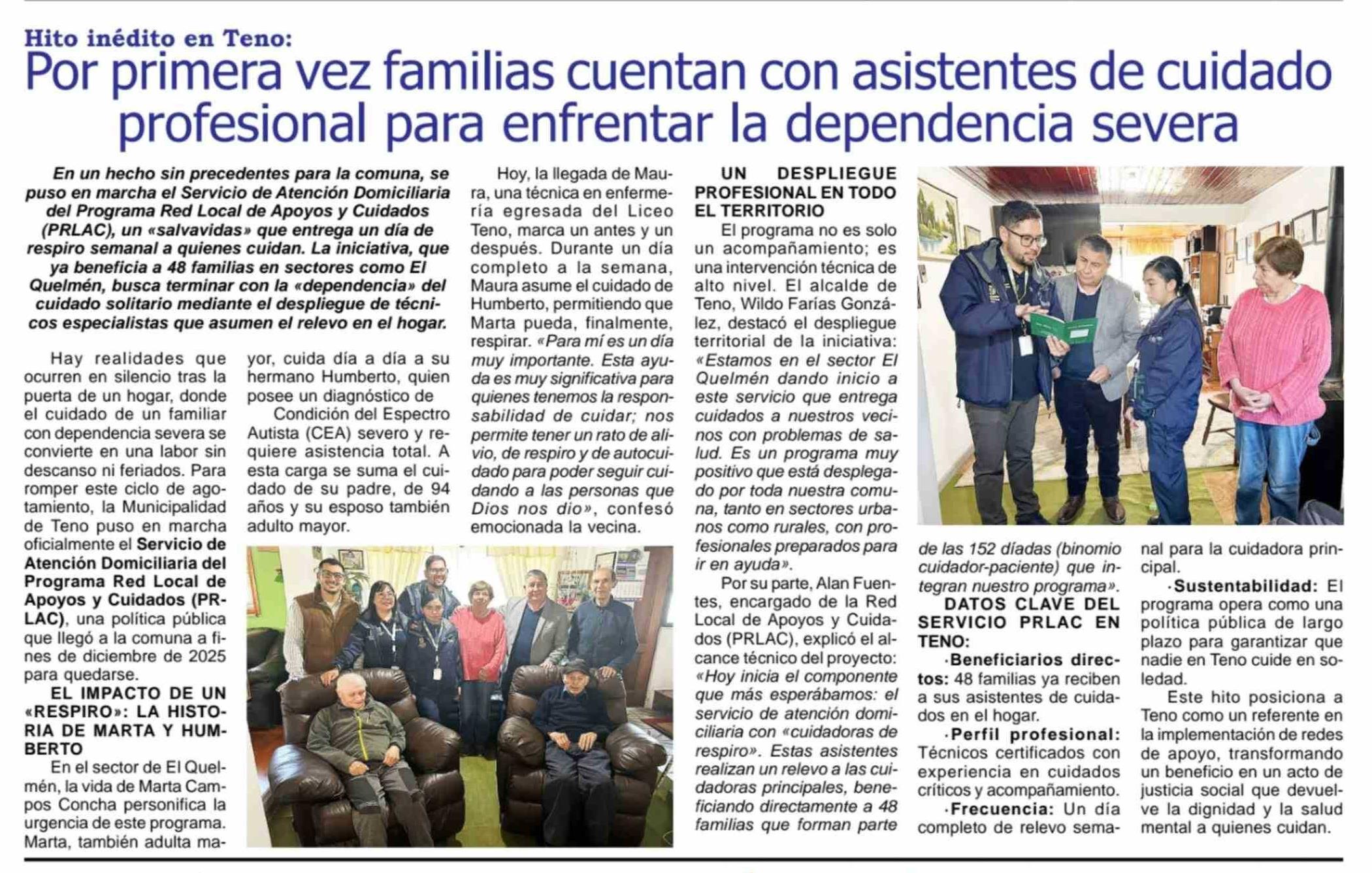 Por primera vez familias cuentan con asistentes de cuidado profesional para enfrentar la dependencia severa