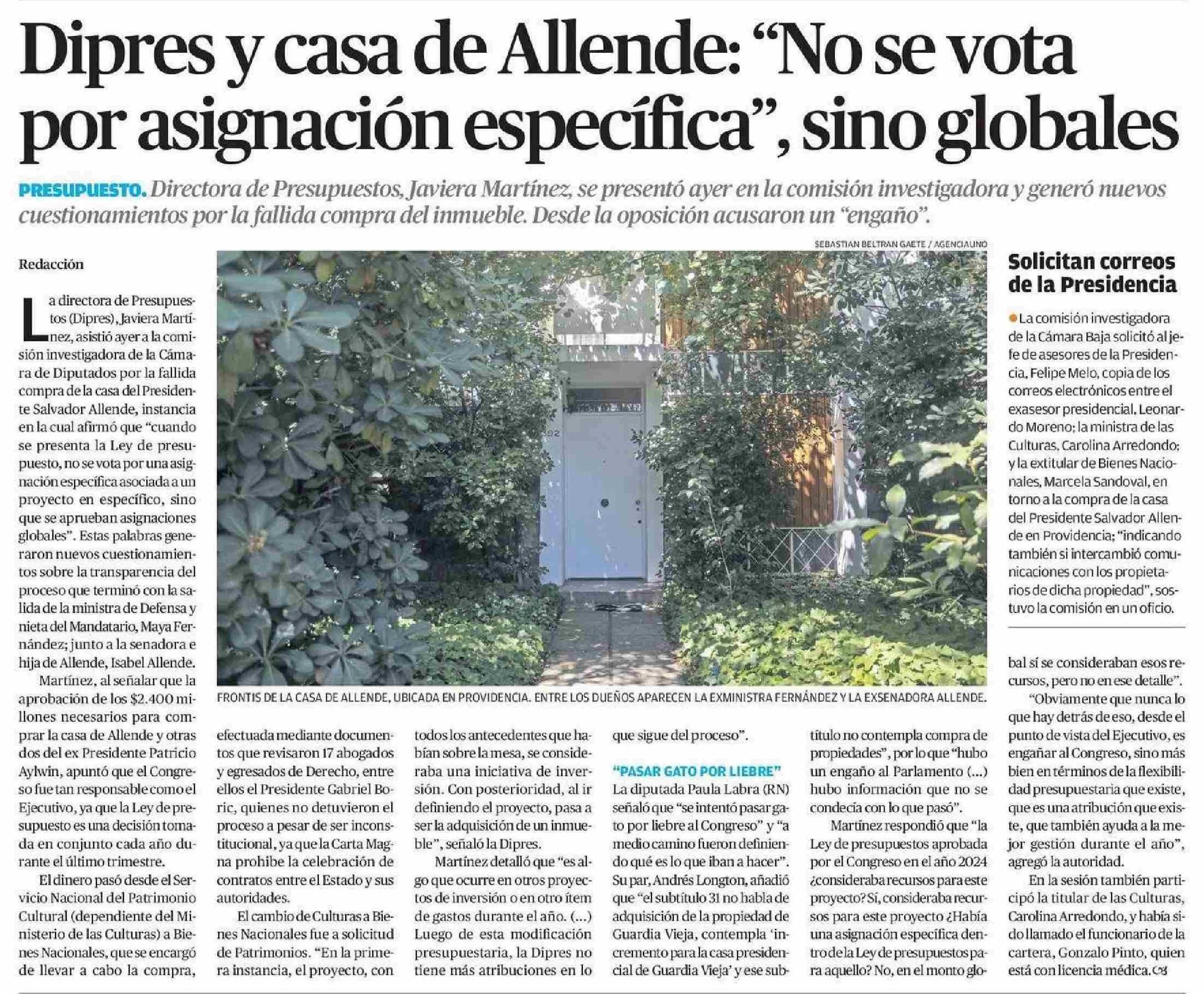 Dipres y casa de Allende: “No se vota por asignación específica”, sino globales