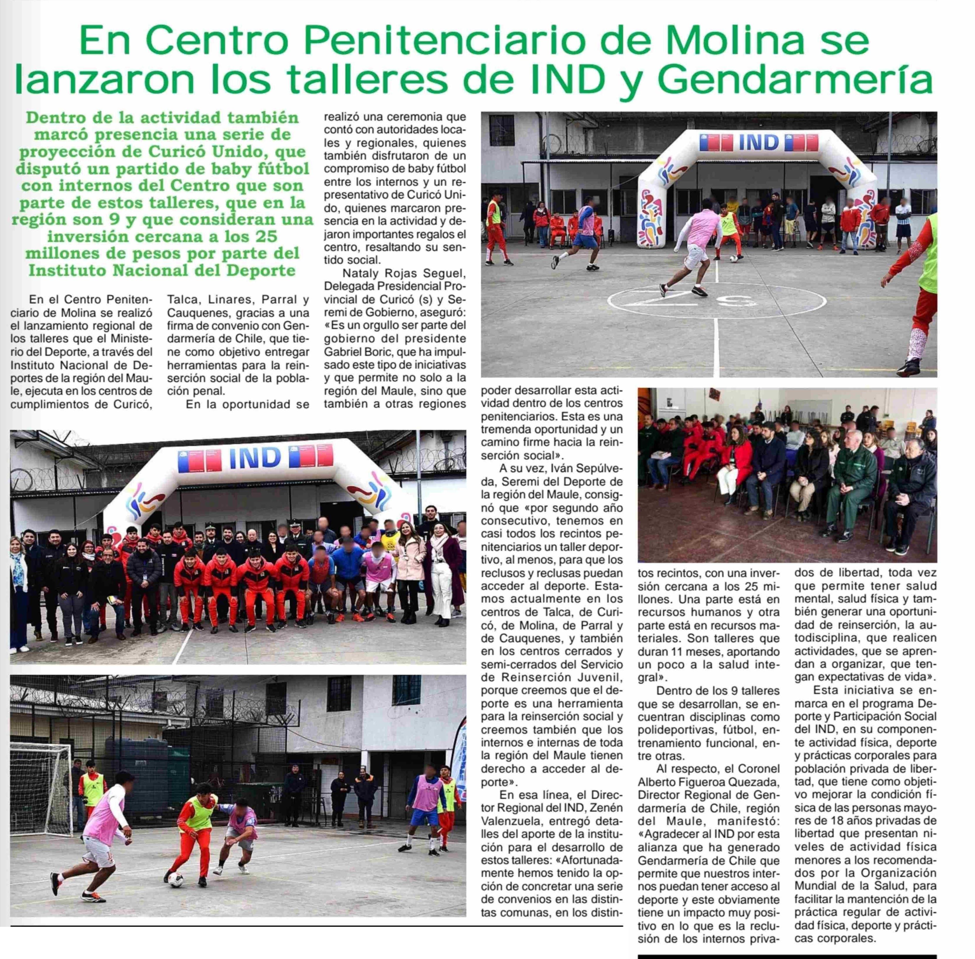 En Centro Penitenciario de Molina se lanzaron los talleres de IND y Gendarmería