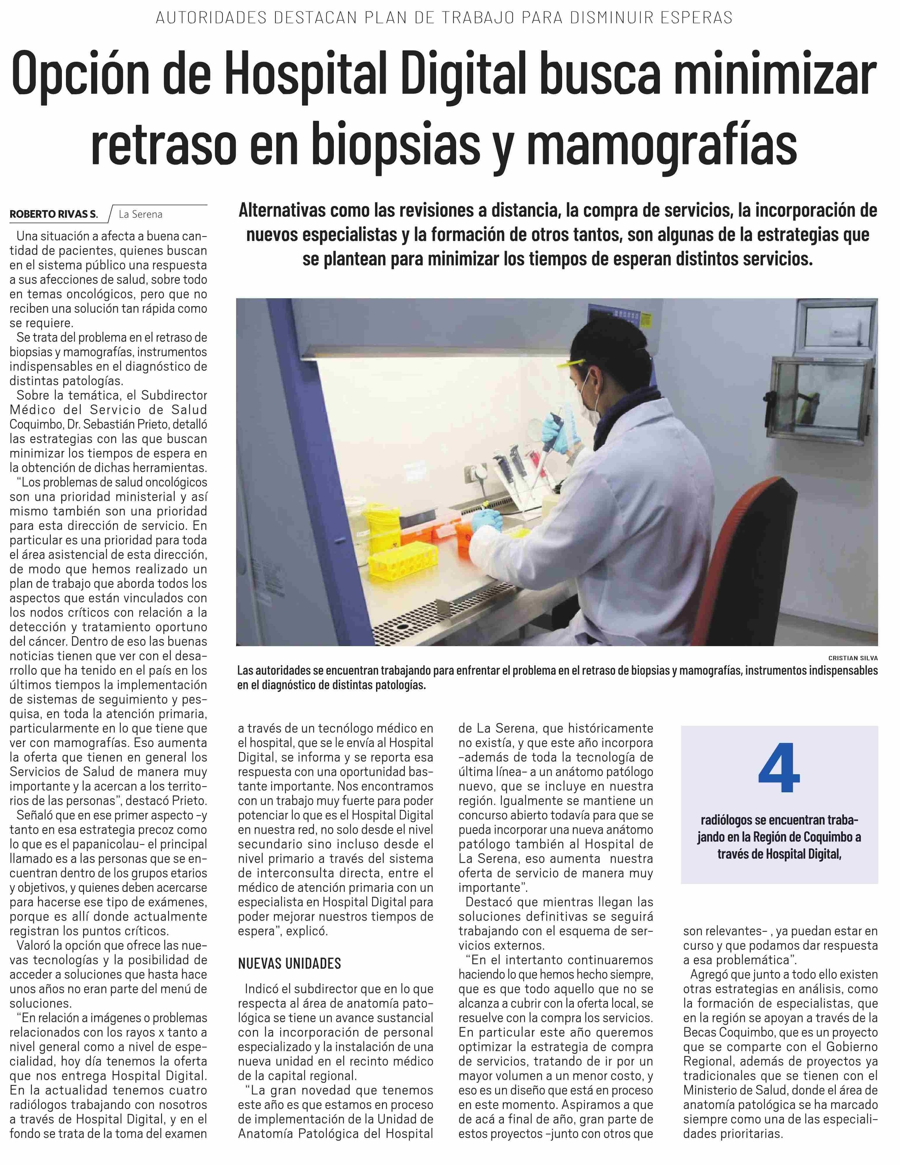 Opción de Hospital Digital busca minimizar retraso en biopsias y mamografías