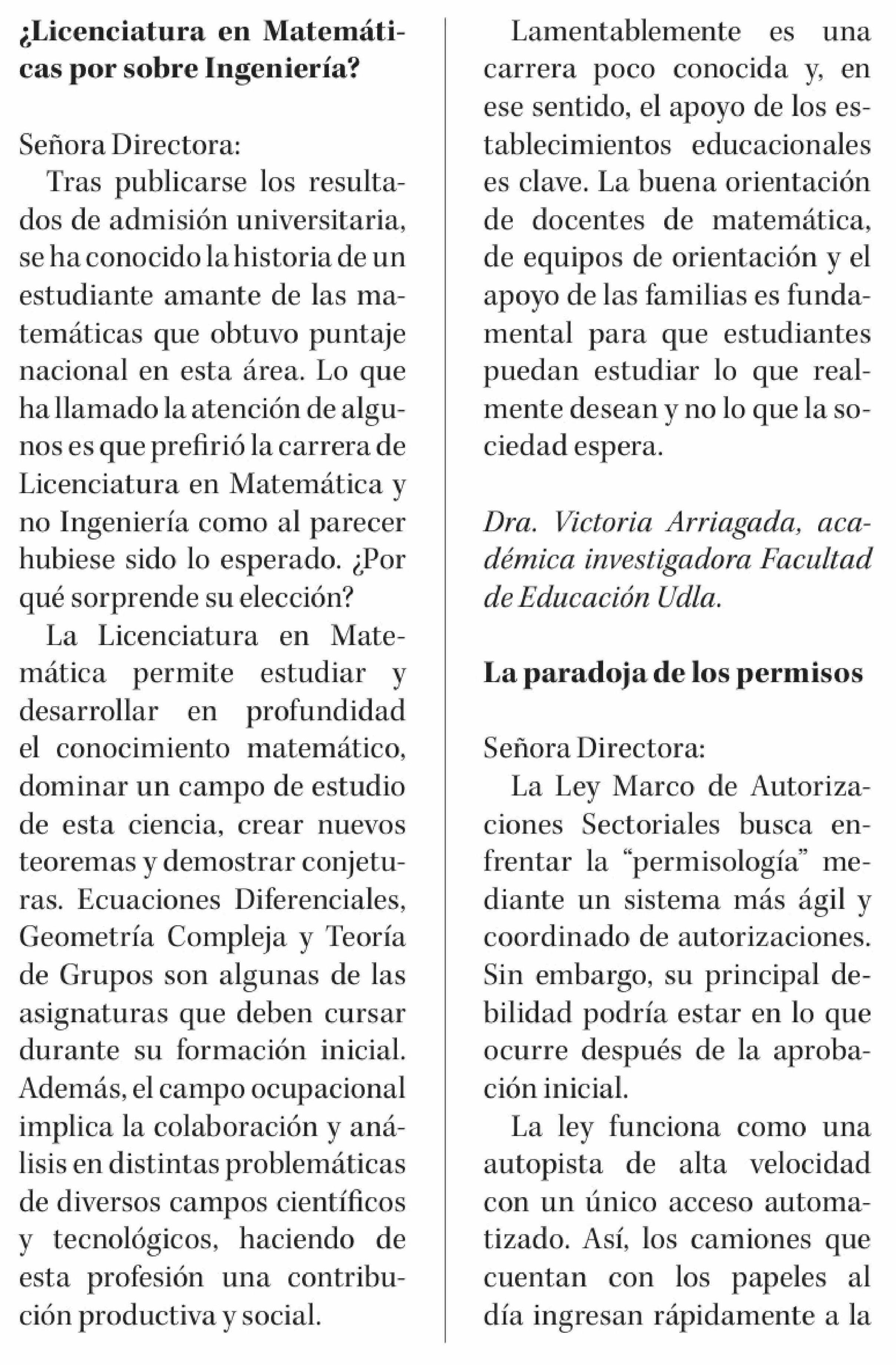Cartas: ¿Licenciatura en Matemáticas por sobre Ingeniería?