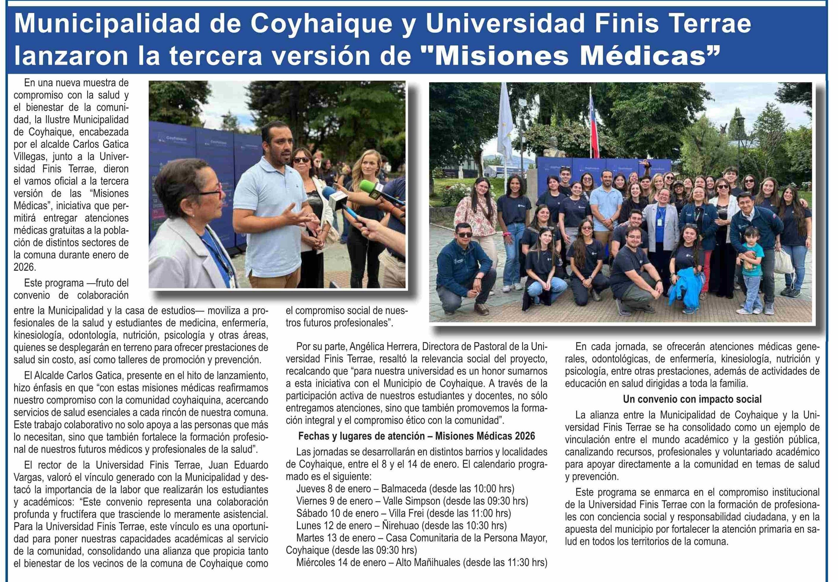 Municipalidad de Coyhaique y Universidad Finis Terrae lanzaron la tercera versión de "Misiones Médicas"