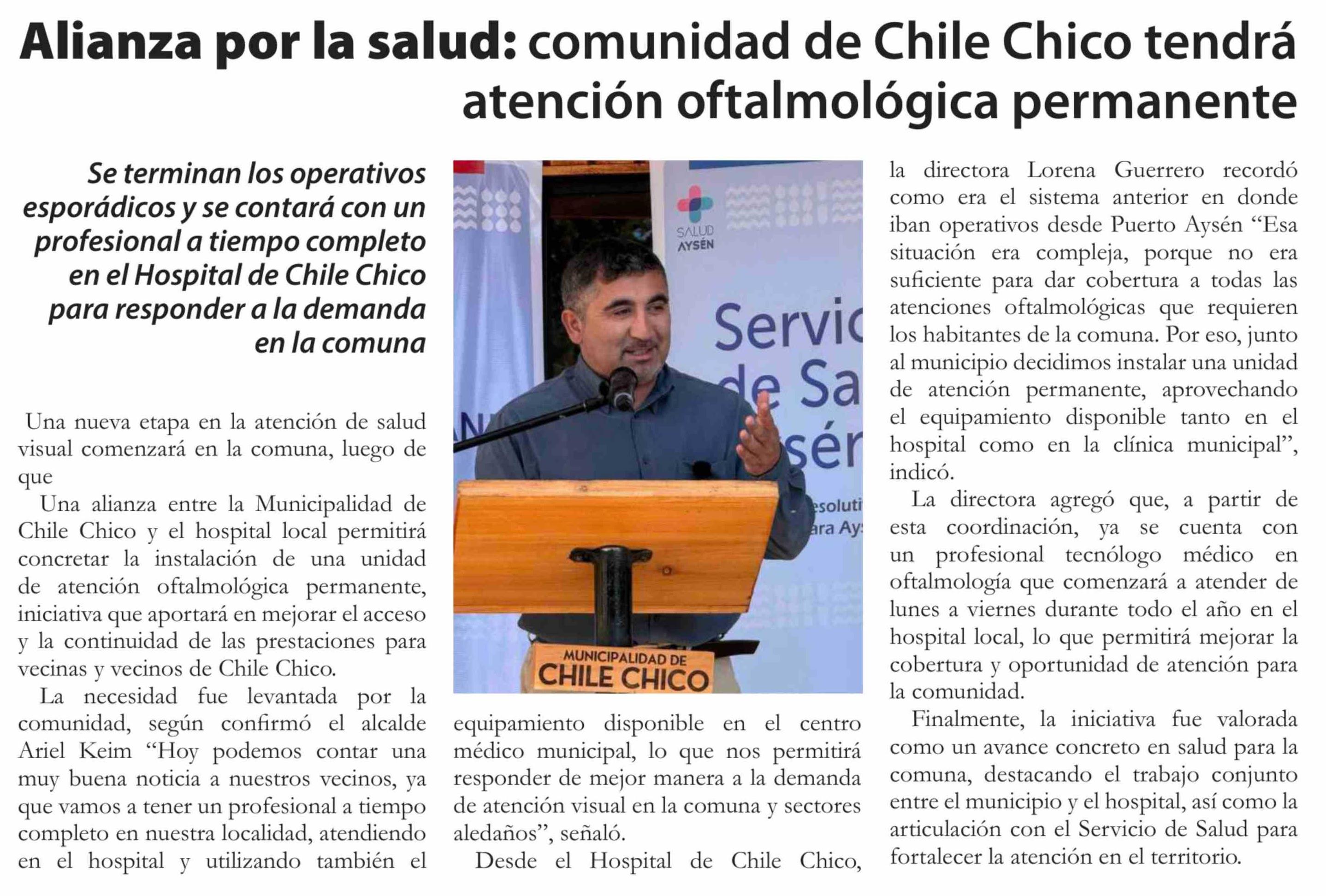 Alianza por la salud: comunidad de Chile Chico tendrá atención oftalmológica permanente