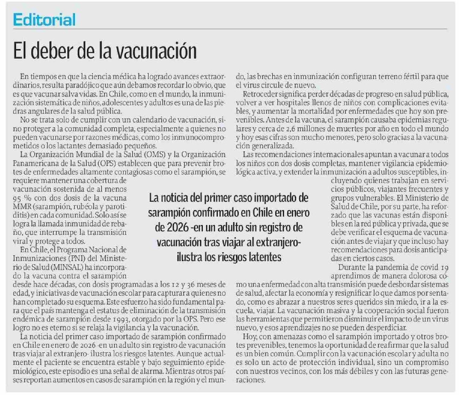 Editorial: El deber de la vacunación