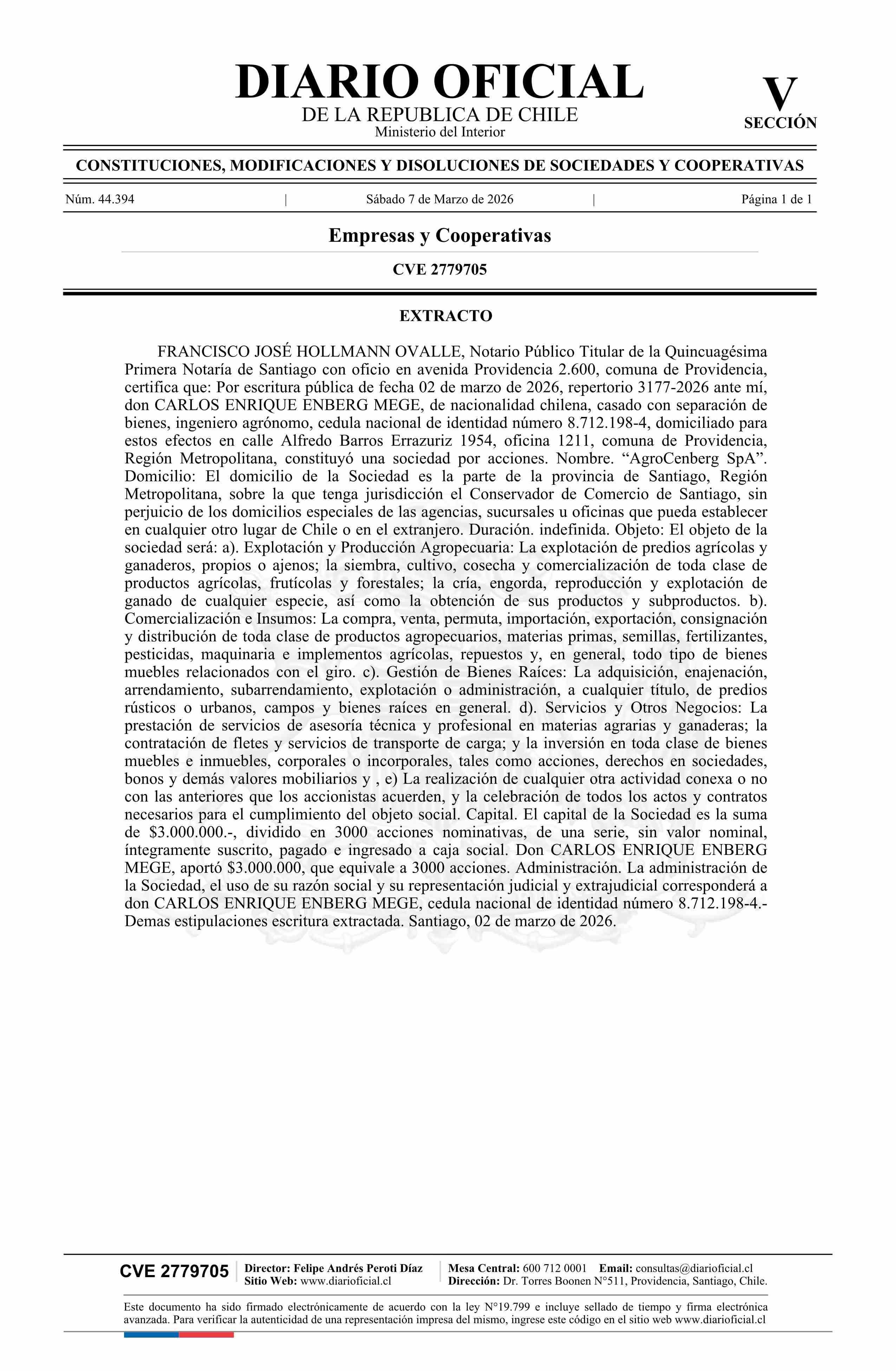Diario Oficial Edición Electrónica (Diario Oficial de Chile - 5 Empresas Y Cooper)