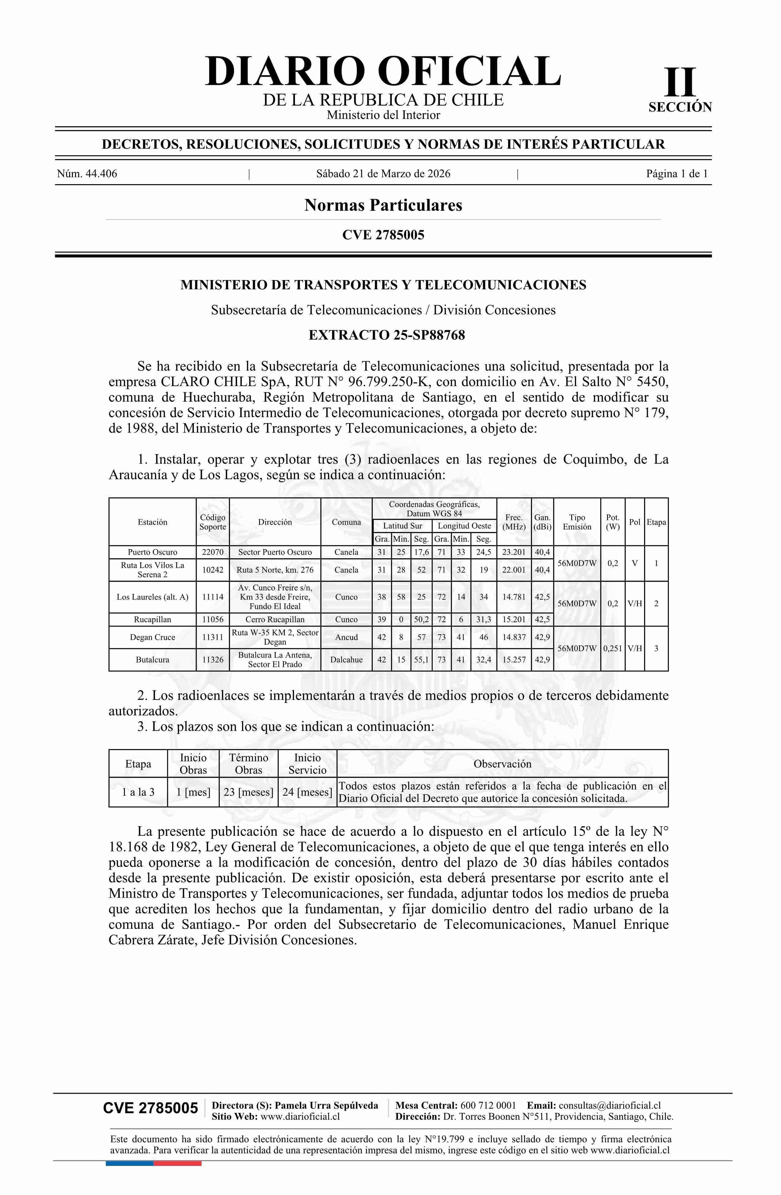 Solicitud número 25-SP88768.- Claro Chile SpA