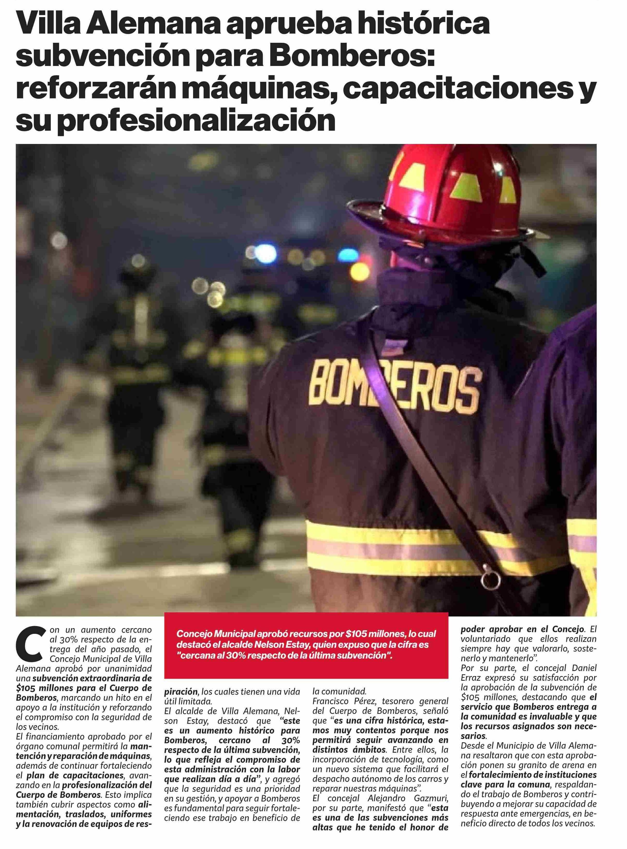 Villa Alemana aprueba histórica subvención para Bomberos: reforzarán máquinas, capacitaciones y su profesionalización