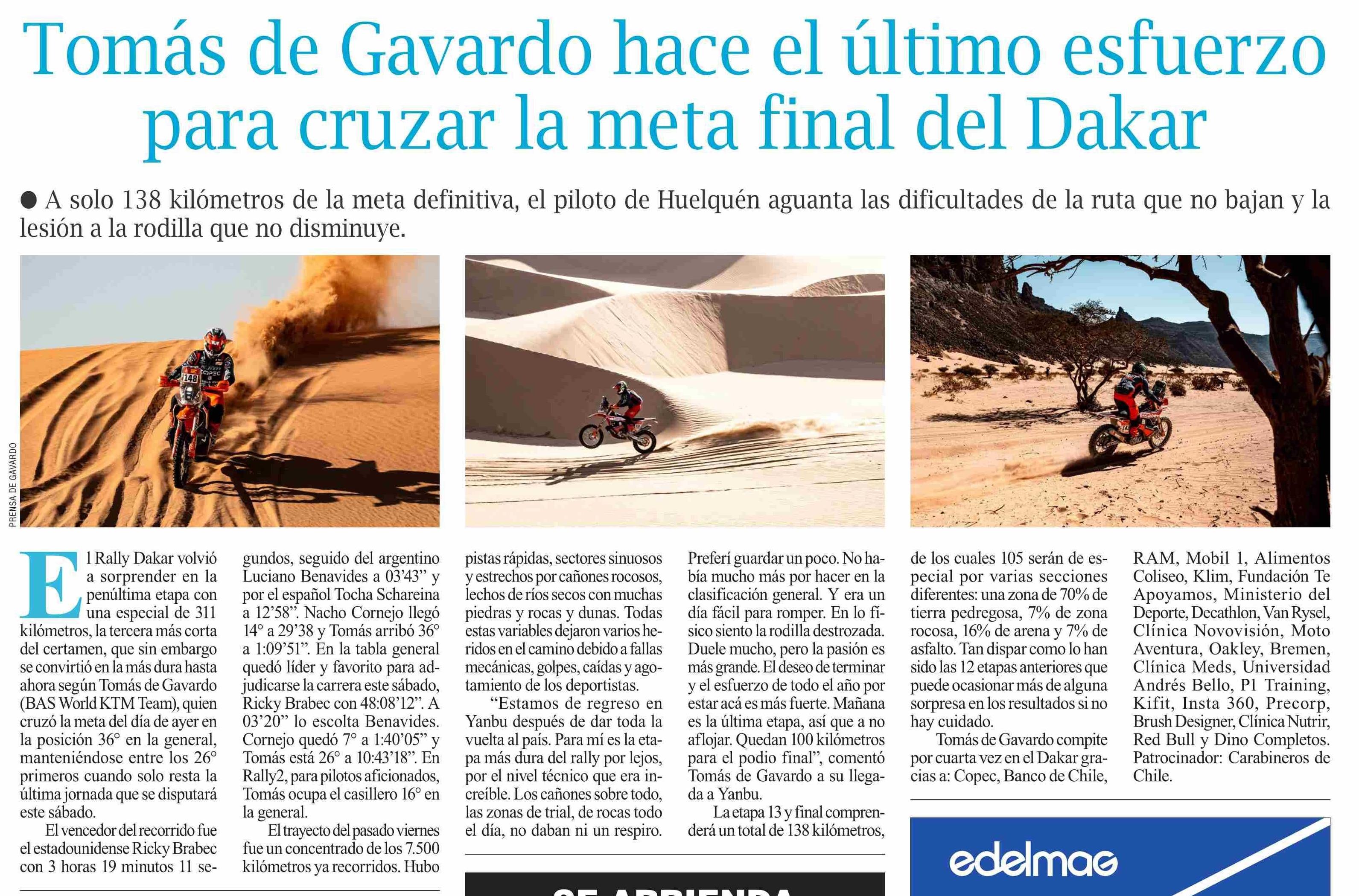 Tomás de Gavardo hace el último esfuerzo para cruzar la meta final del Dakar