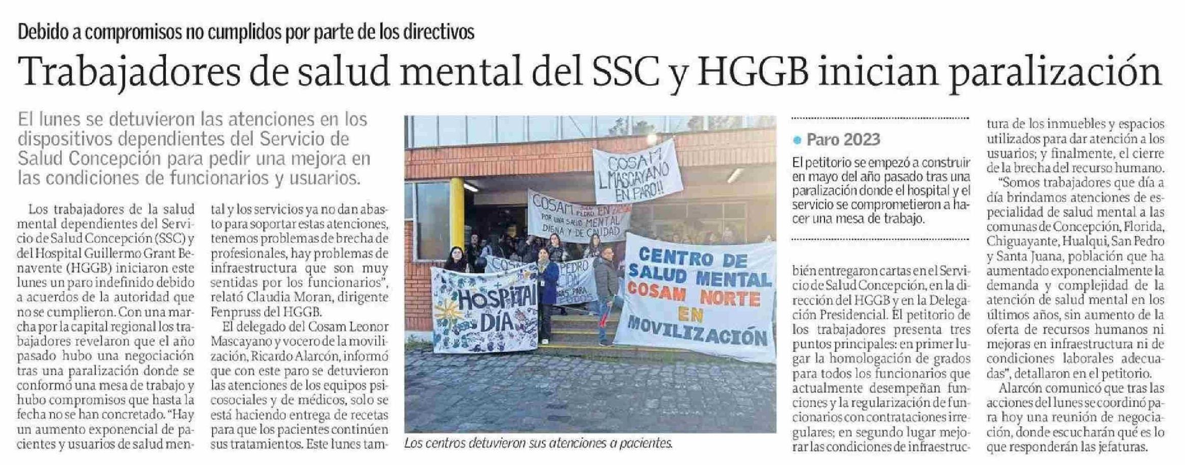 Trabajadores de salud mental del SSC y HGGB inician paralización