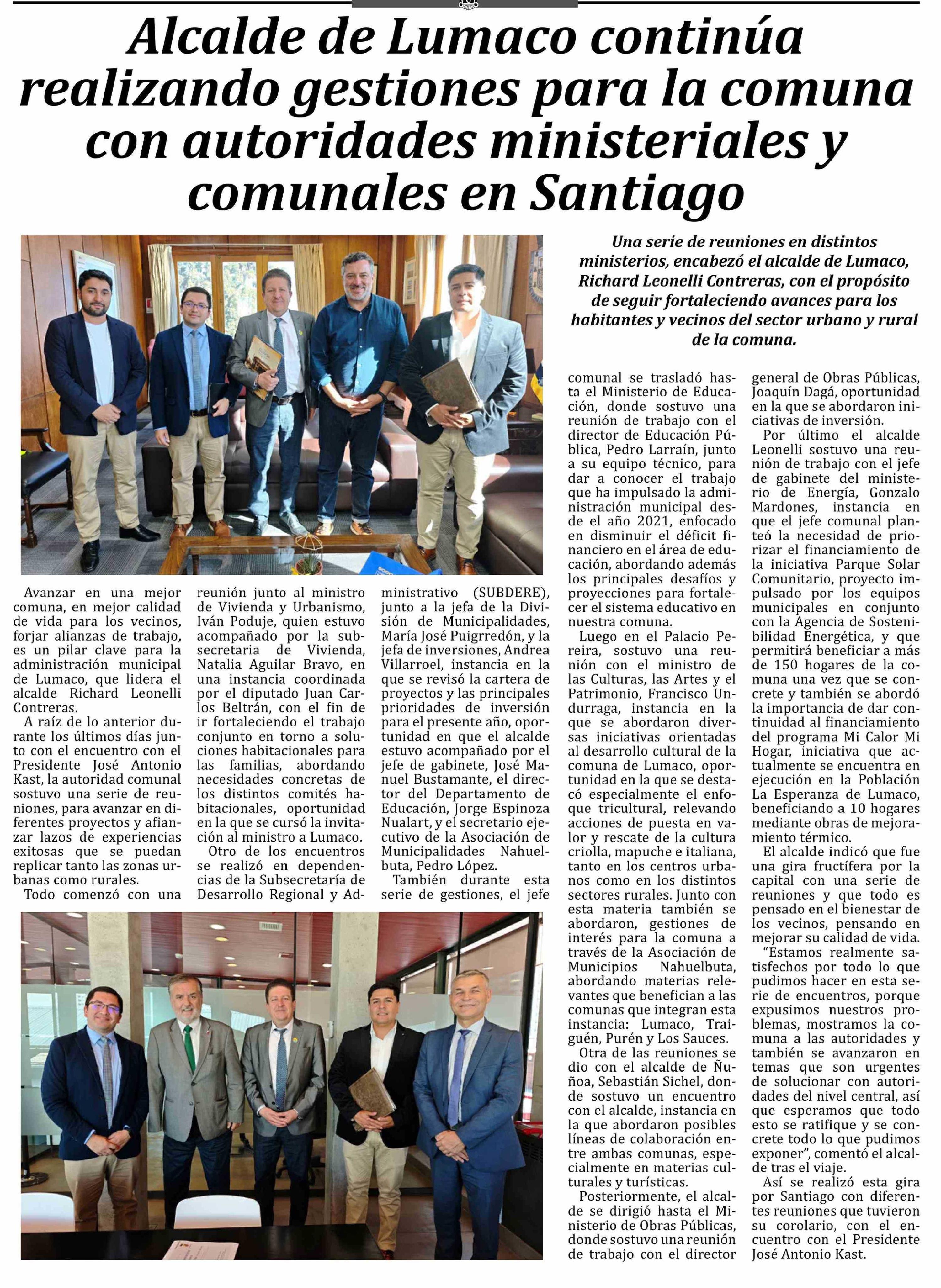 Alcalde de Lumaco continúa realizando gestiones para la comuna con autoridades ministeriales y comunales en Santiago