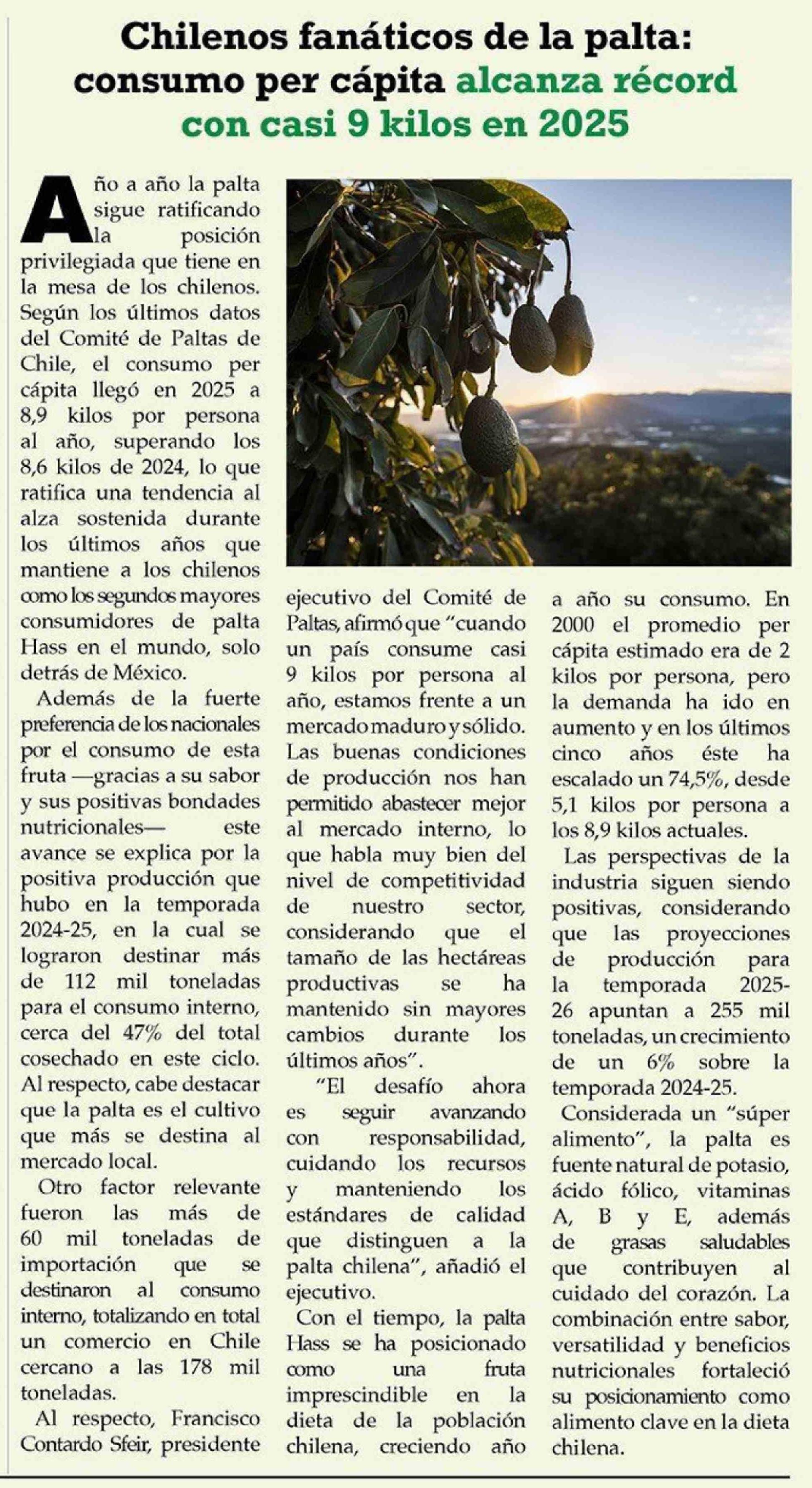 Chilenos fanáticos de la palta: consumo per cápita alcanza récord con casi 9 kilos en 2025