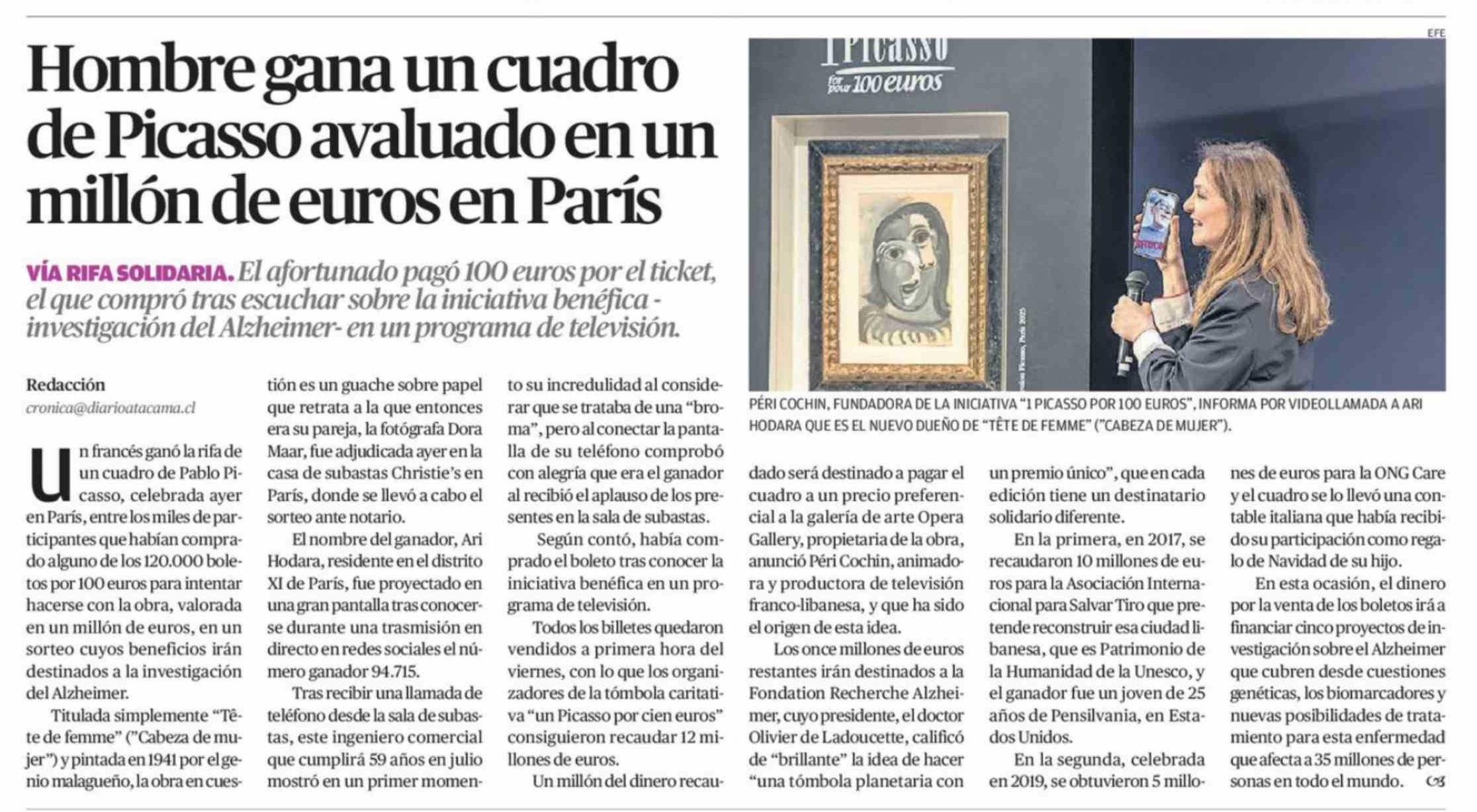 Hombre gana un cuadro de Picasso avaluado en un millón de euros en París
