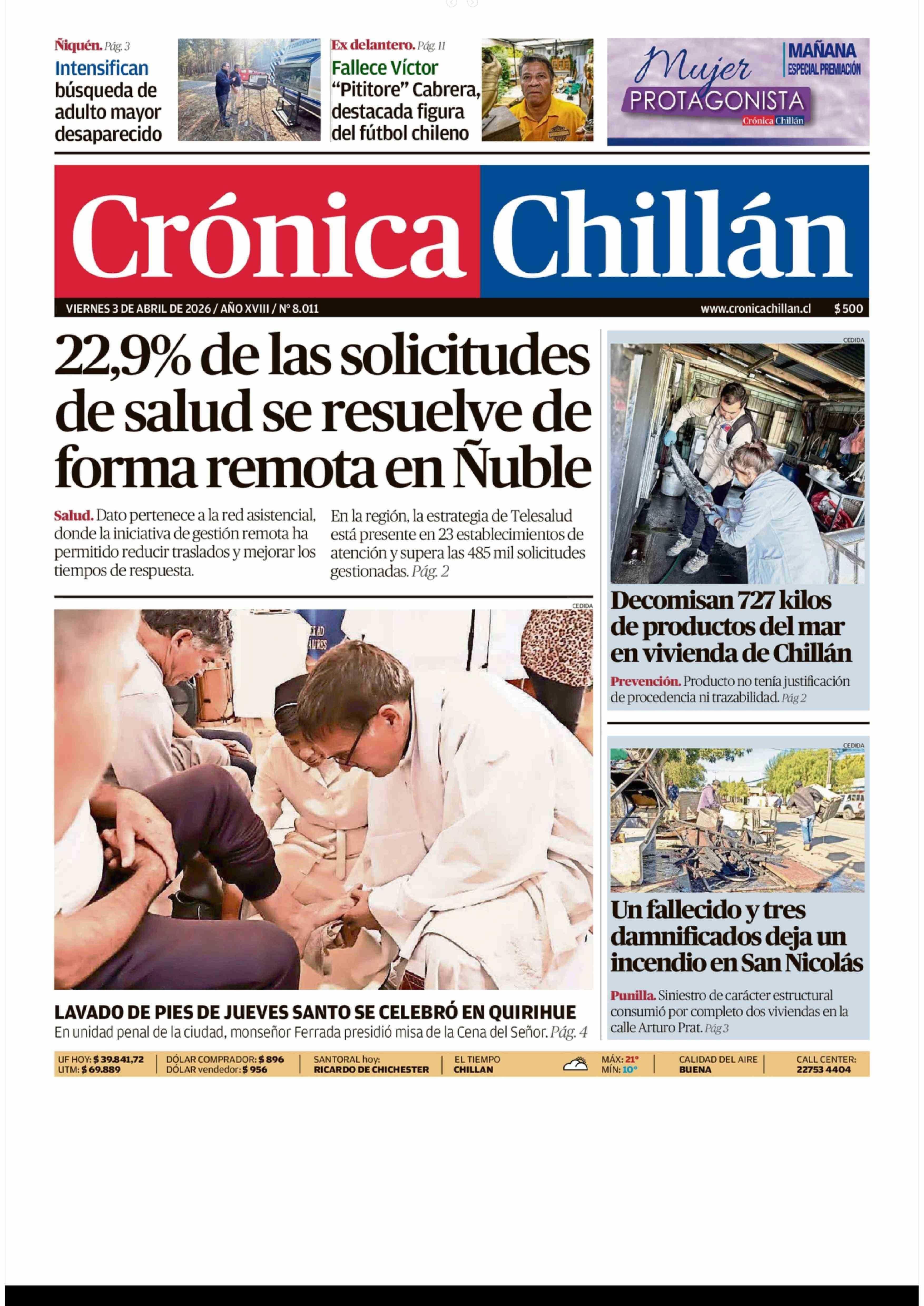PORTADA CRÓNICA CHILLÁN CHILE