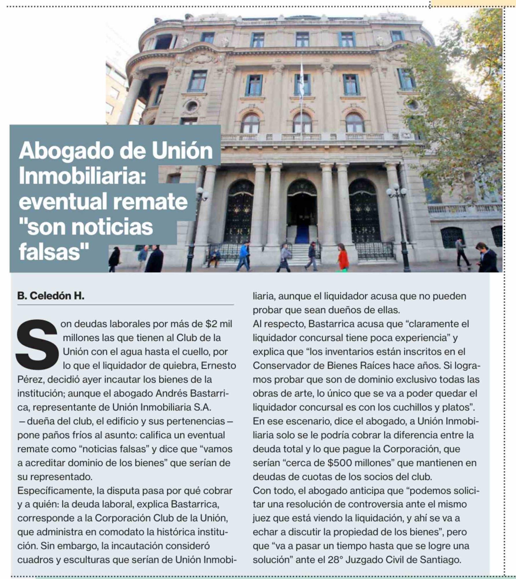 Abogado de Unión Inmobiliaria: eventual remate "son noticias falsas"