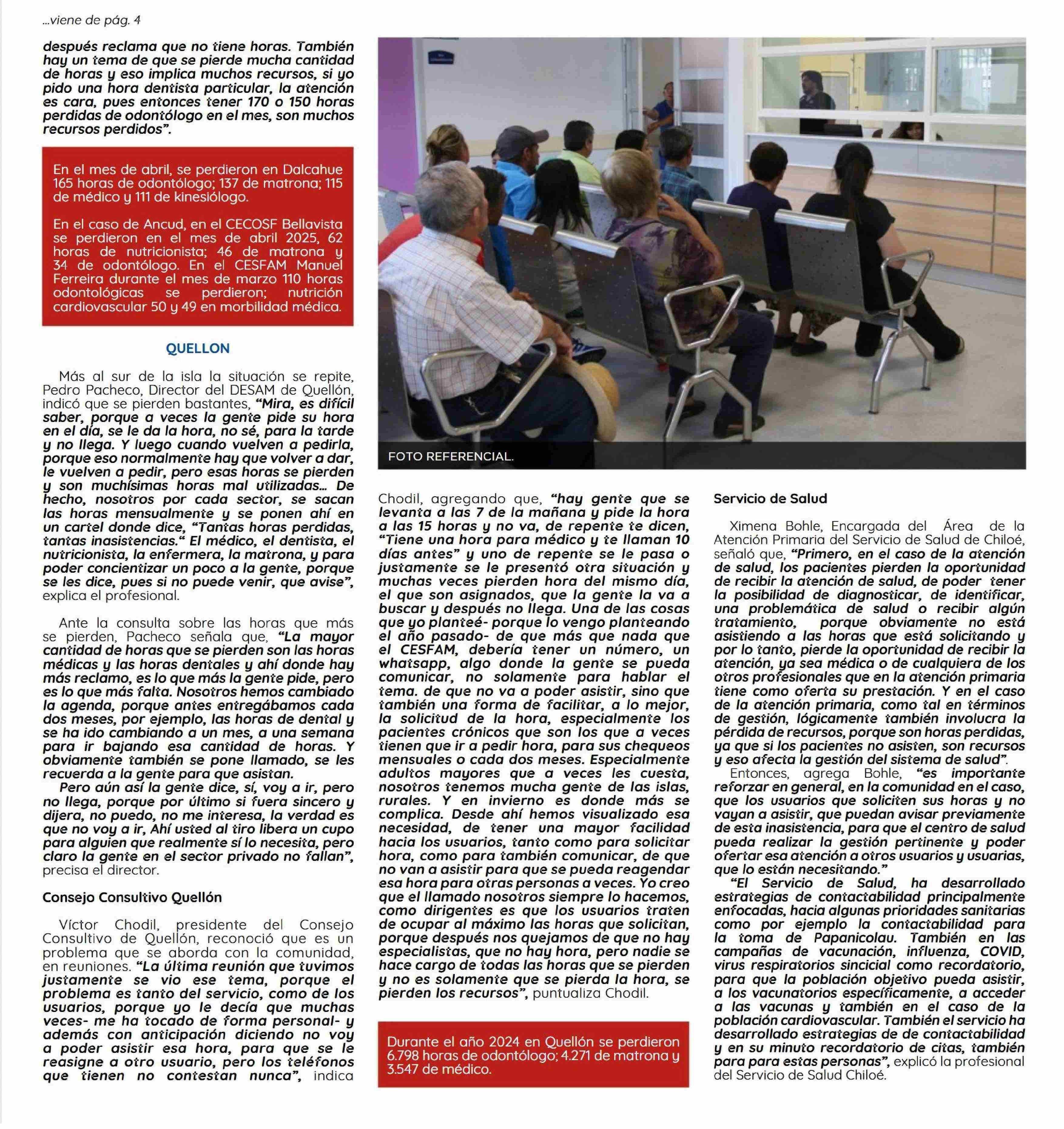 Horas no utilizadas en la APS: Mensualmente se pierde un gran número de atenciones porque las personas no llegan