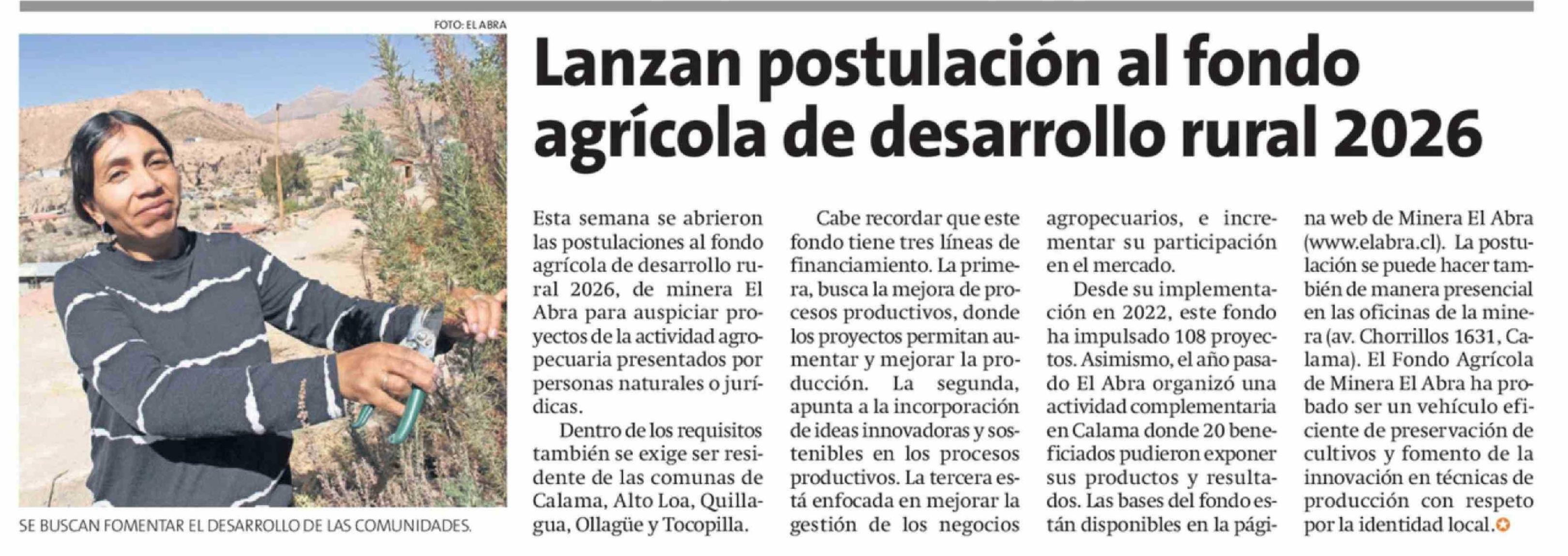 Lanzan postulación al fondo agrícola de desarrollo rural 2026