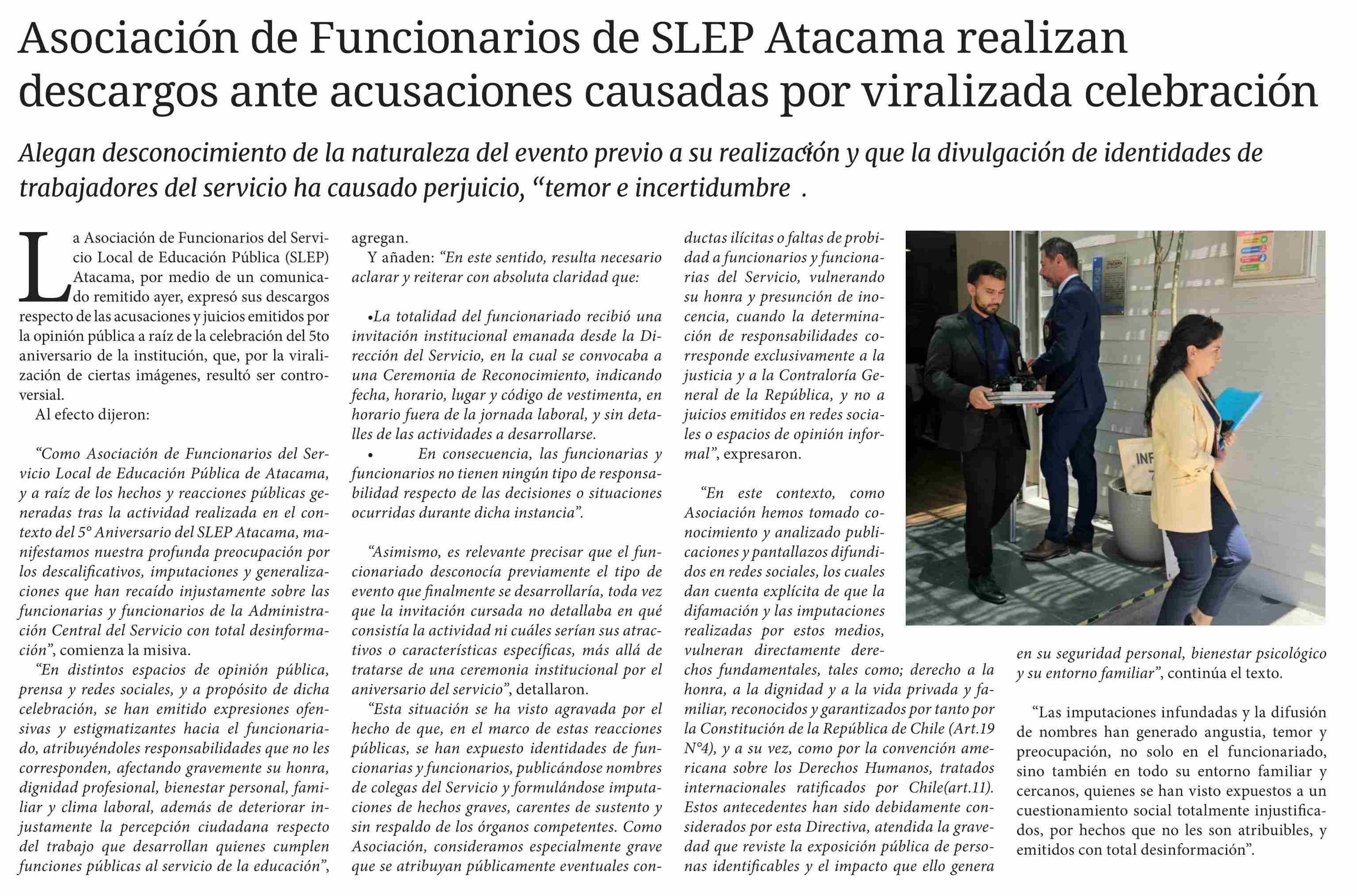 Asociación de Funcionarios de SLEP Atacama realizan descargos ante acusaciones causadas por viralizada celebración