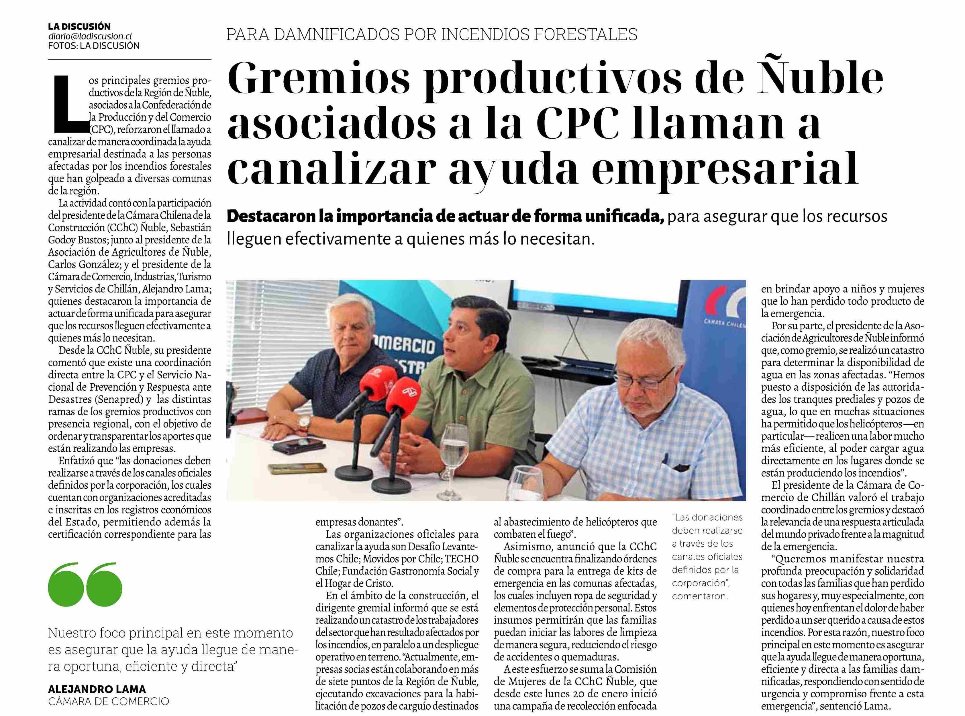 Gremios productivos de Ñuble asociados a la CPC llaman a canalizar ayuda empresarial