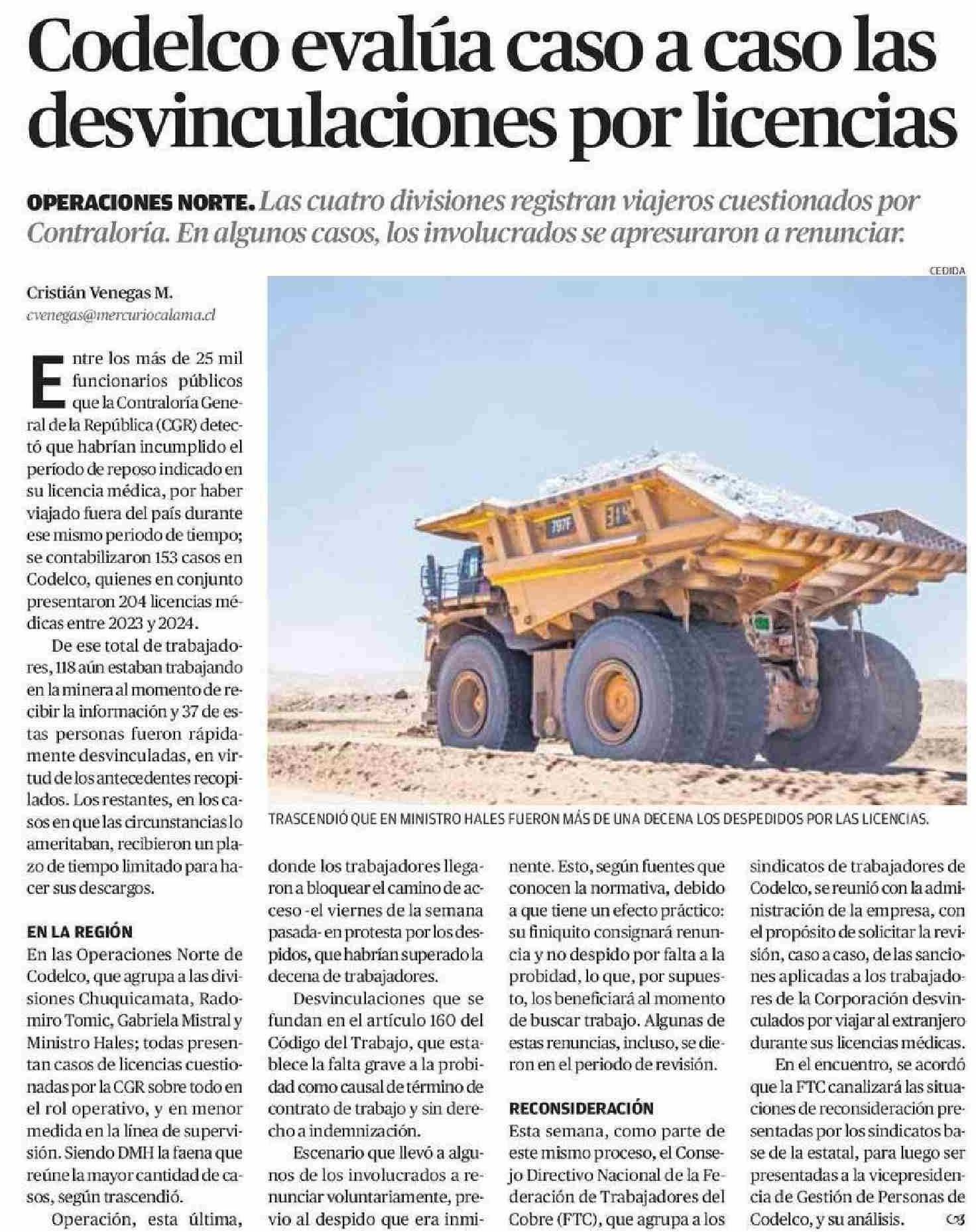Codelco evalúa caso a caso las desvinculaciones por licencias