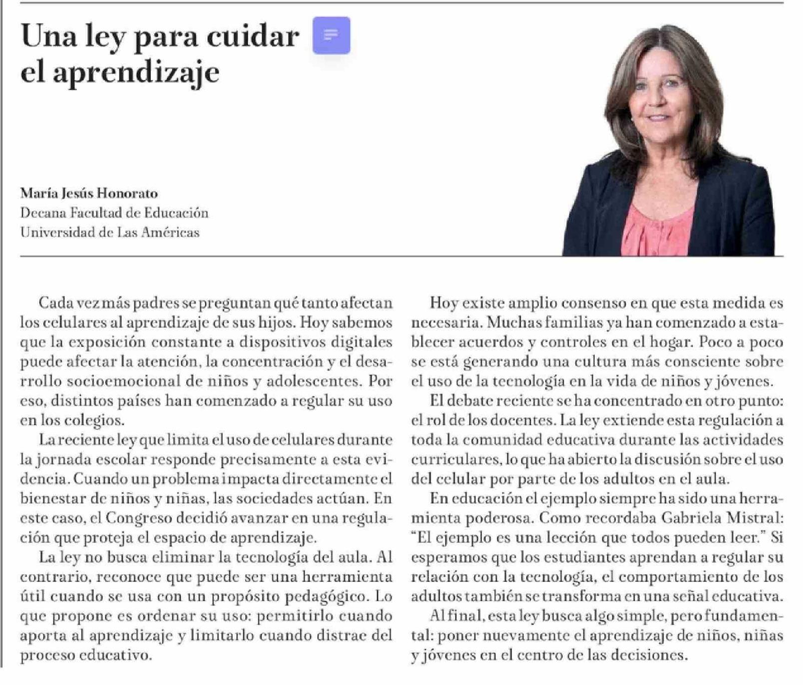 Título: Columnas de Opinión: Una ley para cuidar el aprendizaje