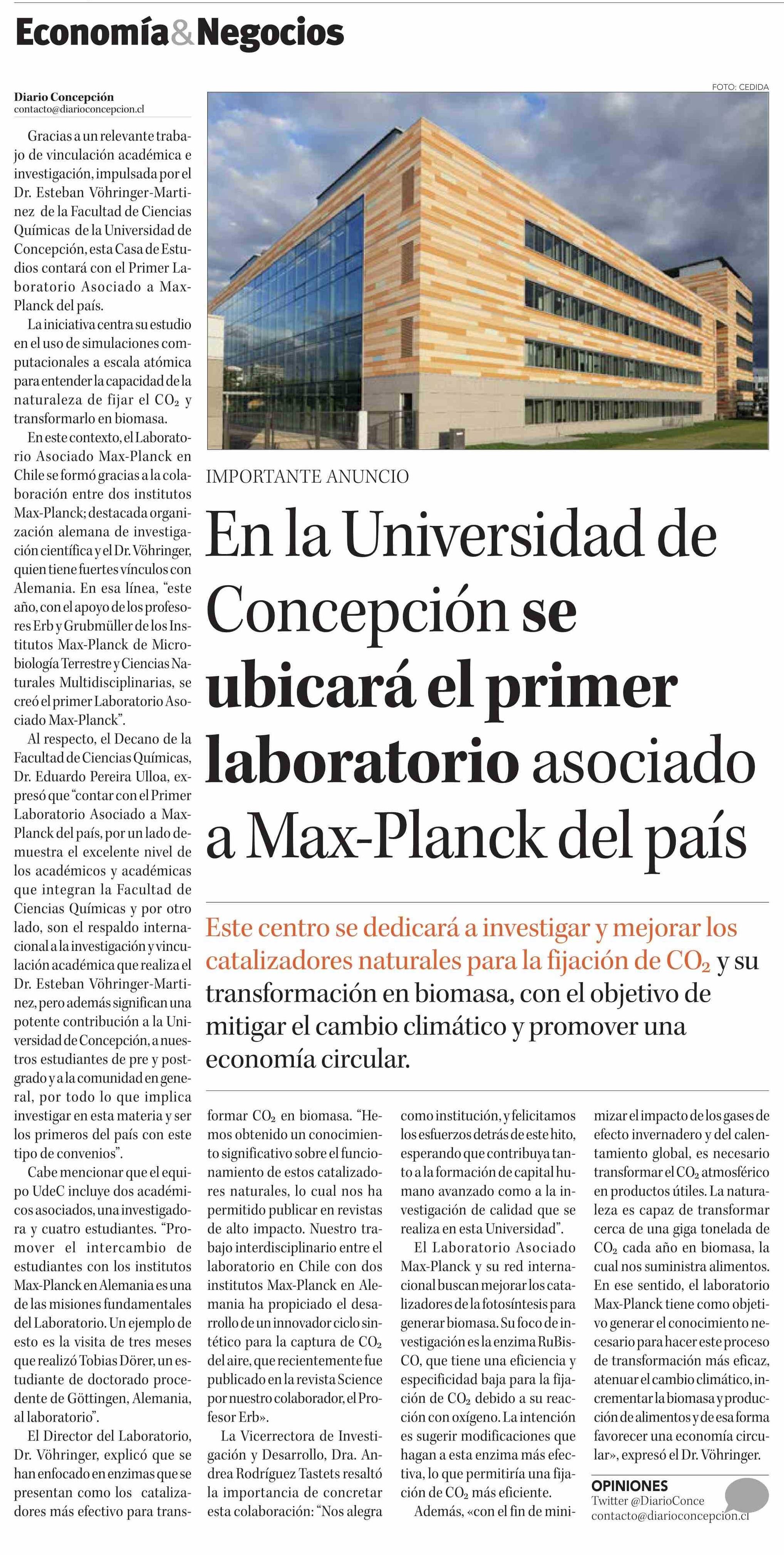 En la Universidad de Concepción se ubicará el primer laboratorio asociado a Max-Planck del país