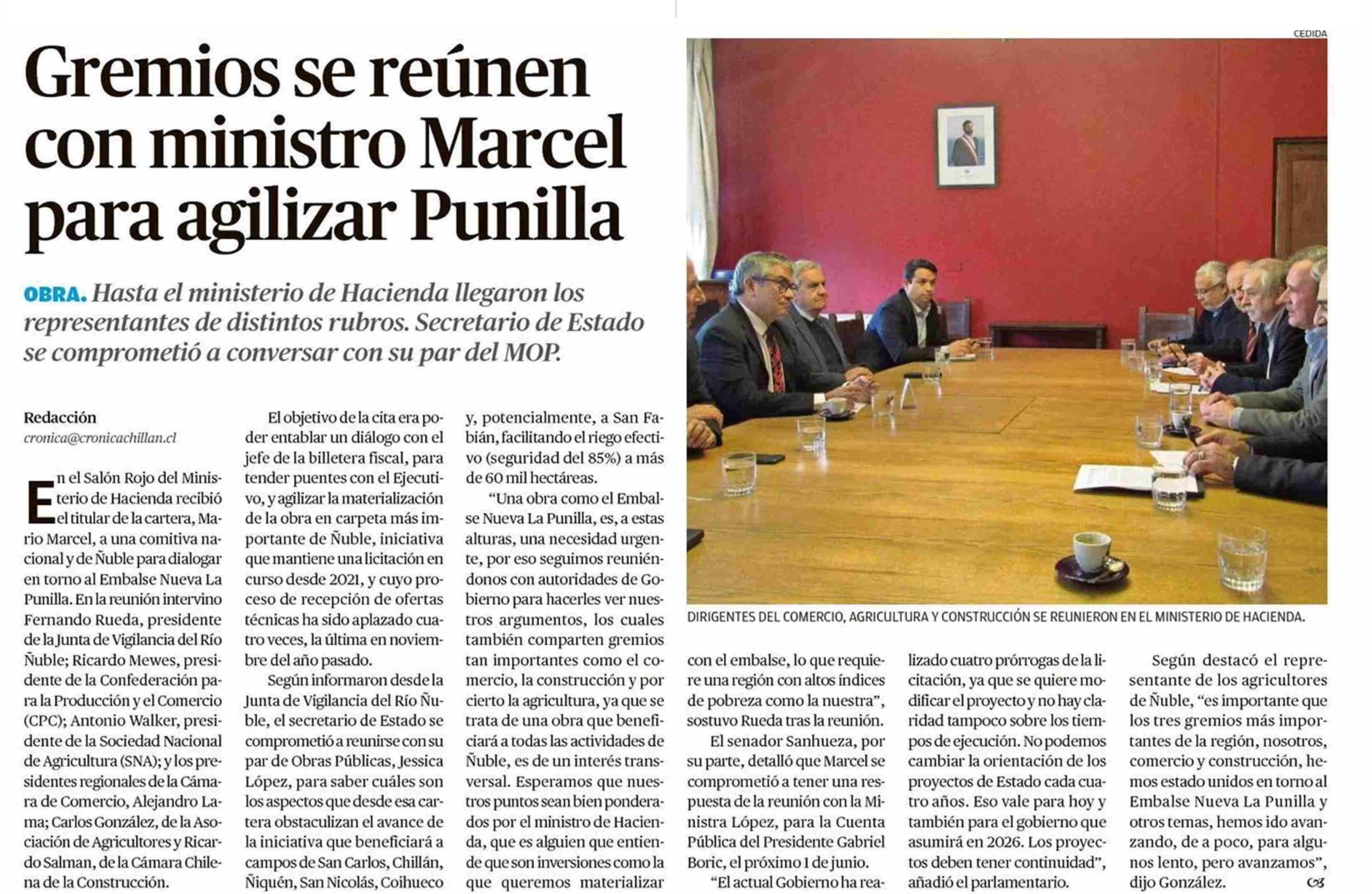 Gremios se reúnen con ministro Marcel para agilizar Punilla