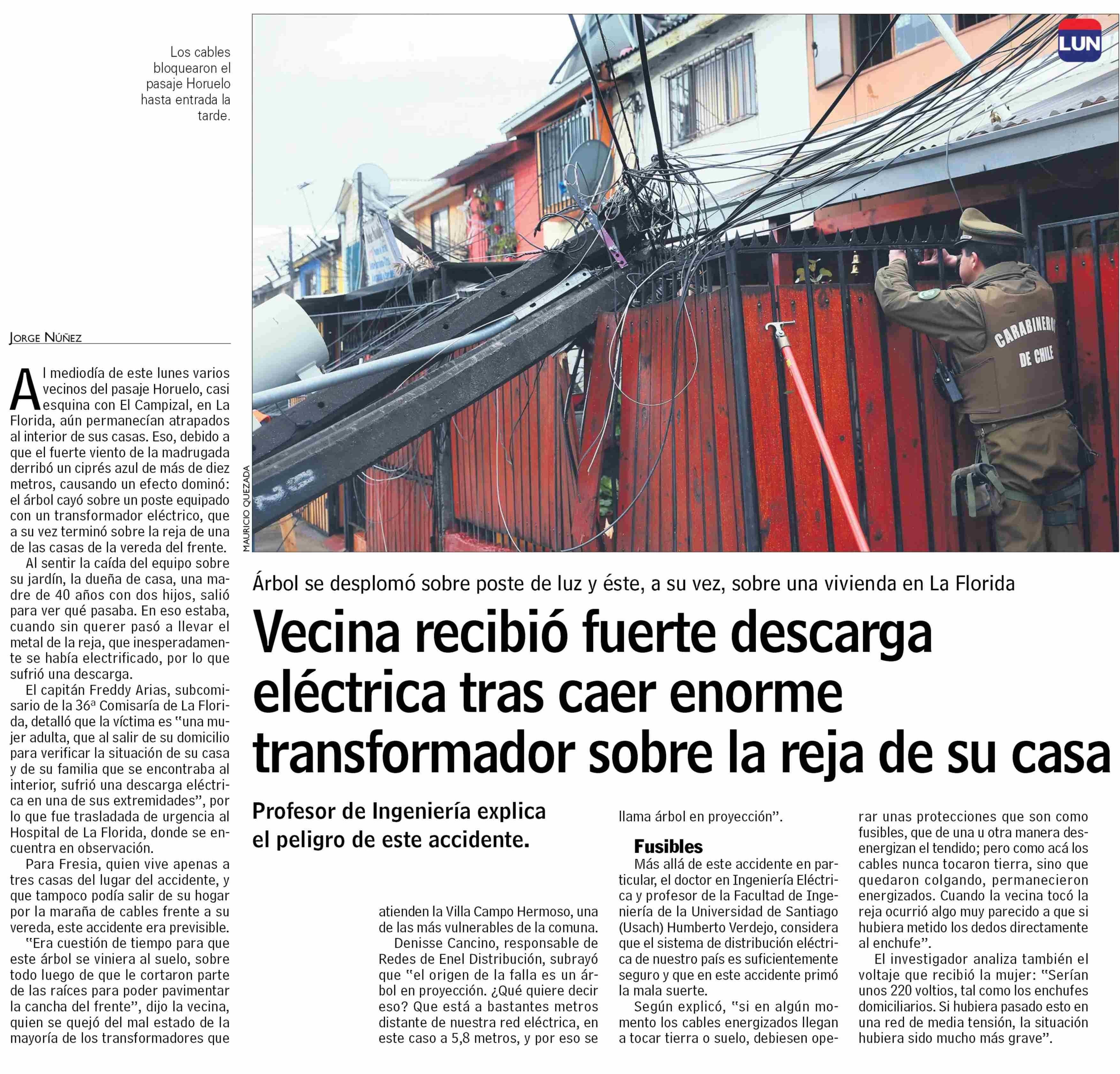 Vecina recibió fuerte descarga eléctrica tras caer enorme transformador sobre la reja de su casa