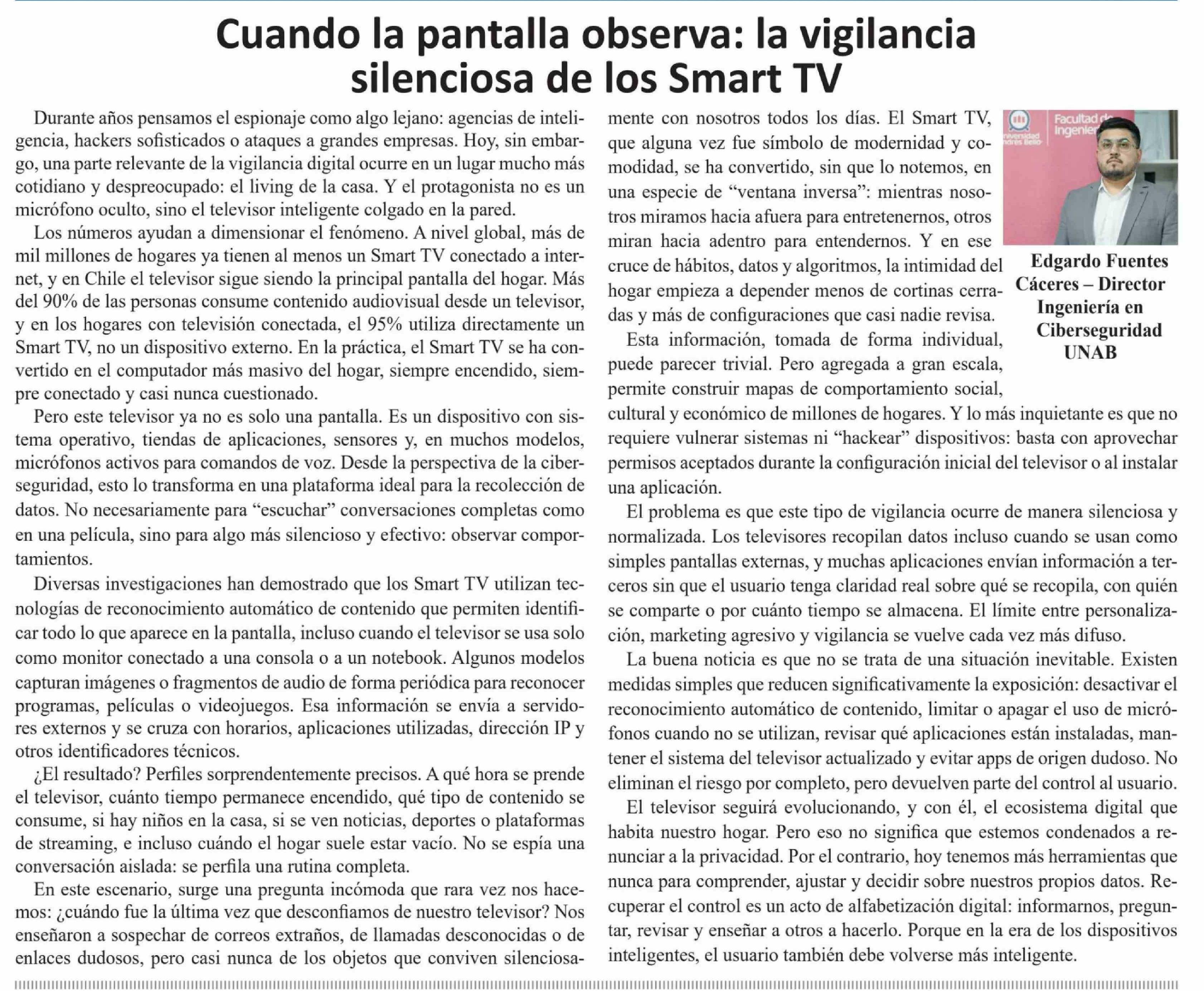 Columnas de Opinión: Cuando la pantalla observa: la vigilancia silenciosa de los Smart TV