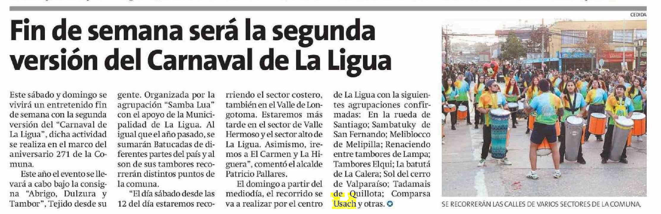 Fin de semana será la segunda versión del Carnaval de La Ligua