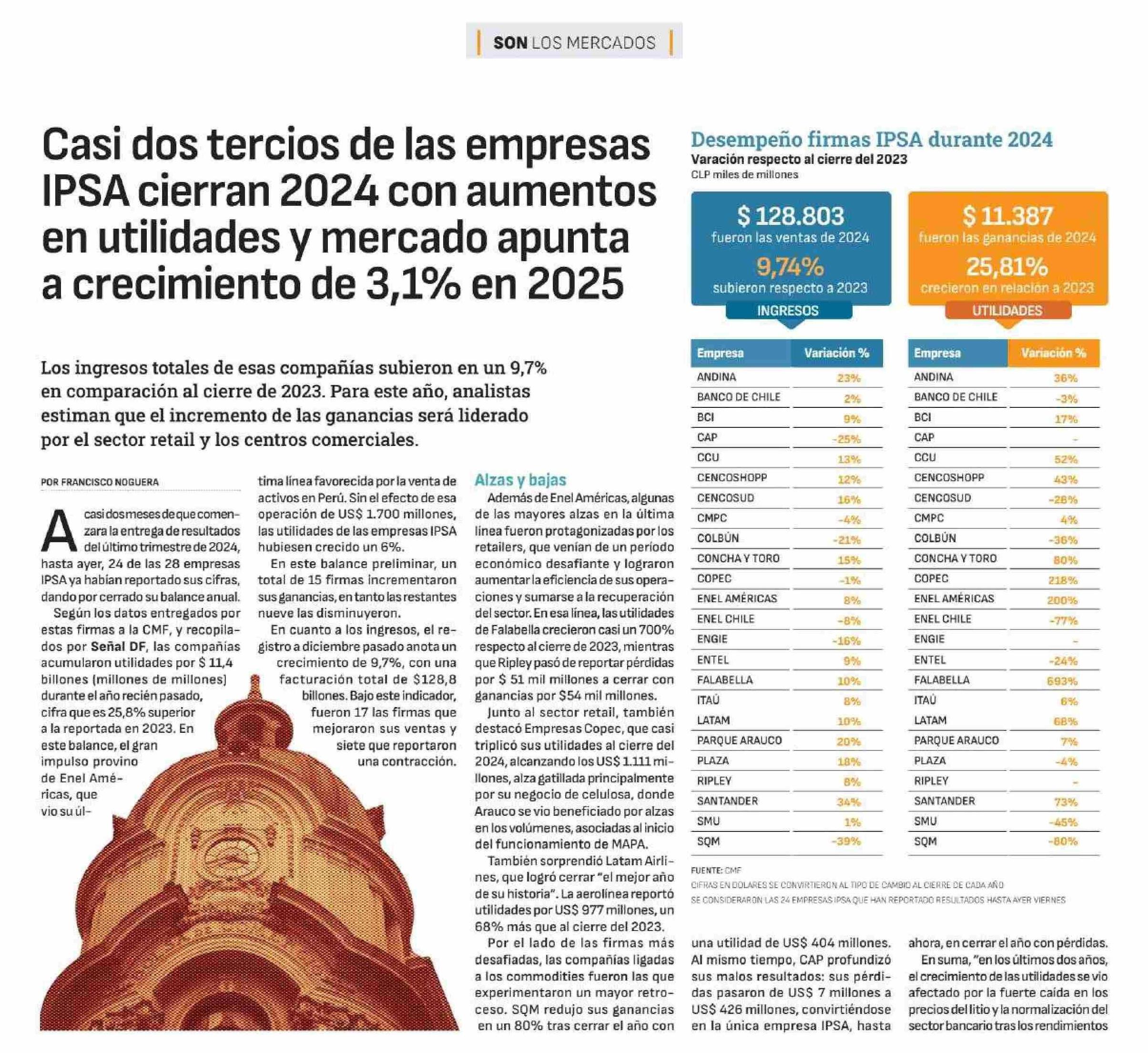 | Título: | Casi dos tercios de las empresas IPSA cierran 2024 con aumentos en utilidades y mercado apunta a crecimiento de 3,1% en 2025 |