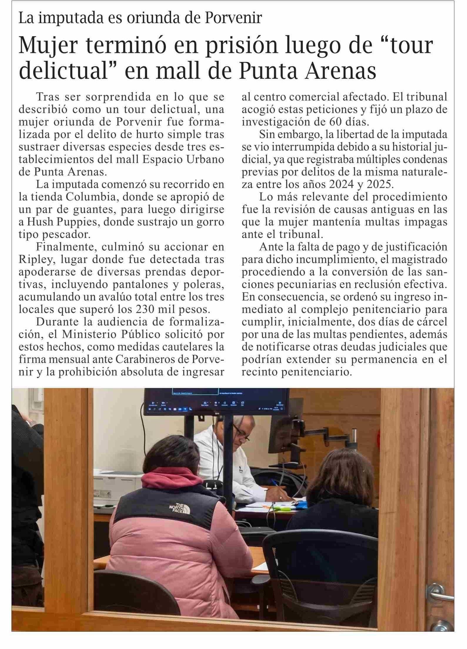 Mujer terminó en prisión luego de “tour delictual” en mall de Punta Arenas