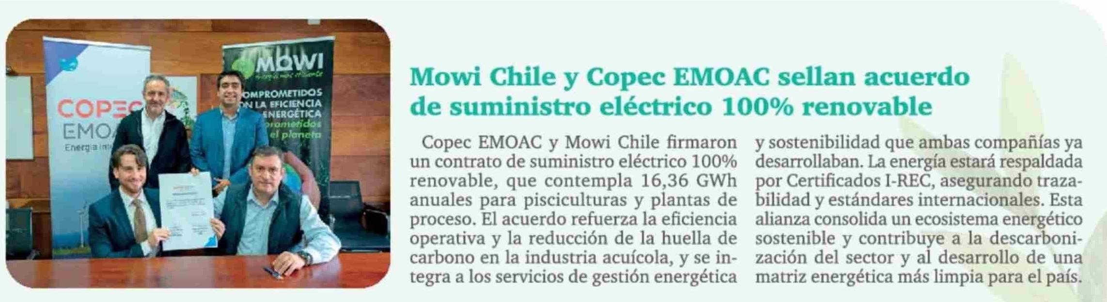 Mowi Chile y Copec EMOAC sellan acuerdo de suministro eléctrico 100% renovable