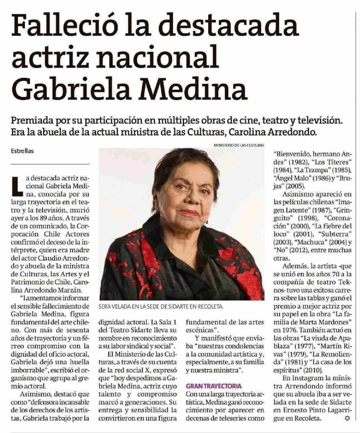 Falleció la destacada Gabriela Medina actriz nacional