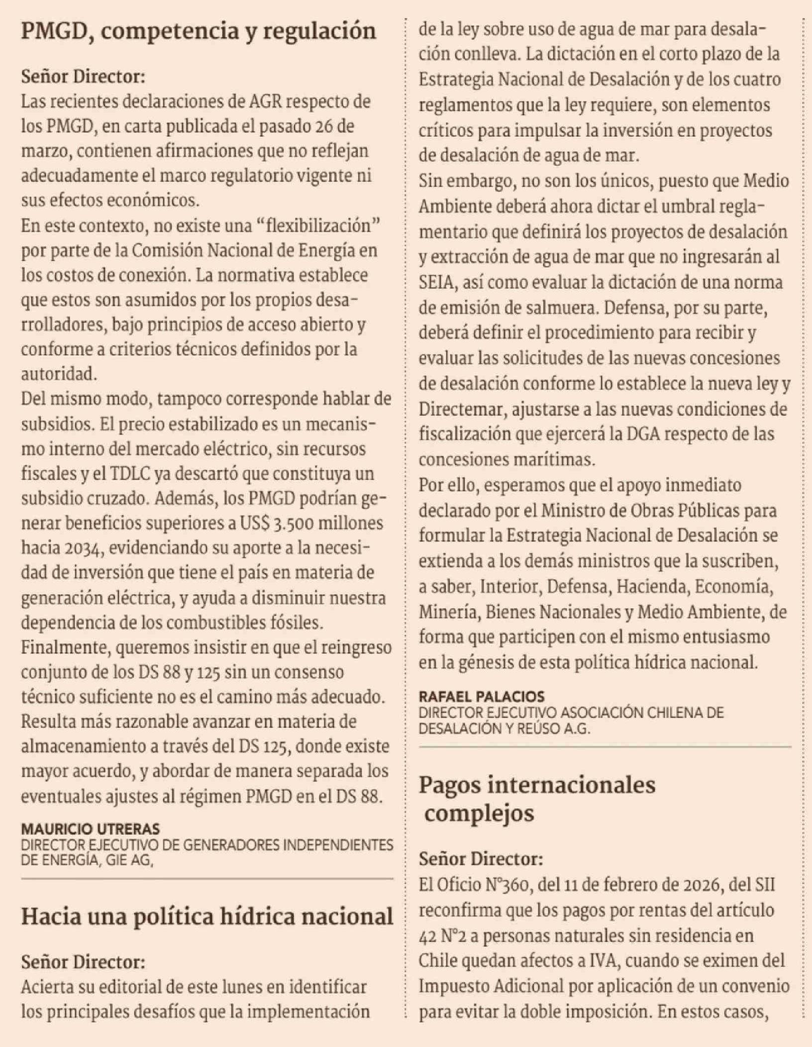 Título: Cartas: Hacia una política hídrica nacional