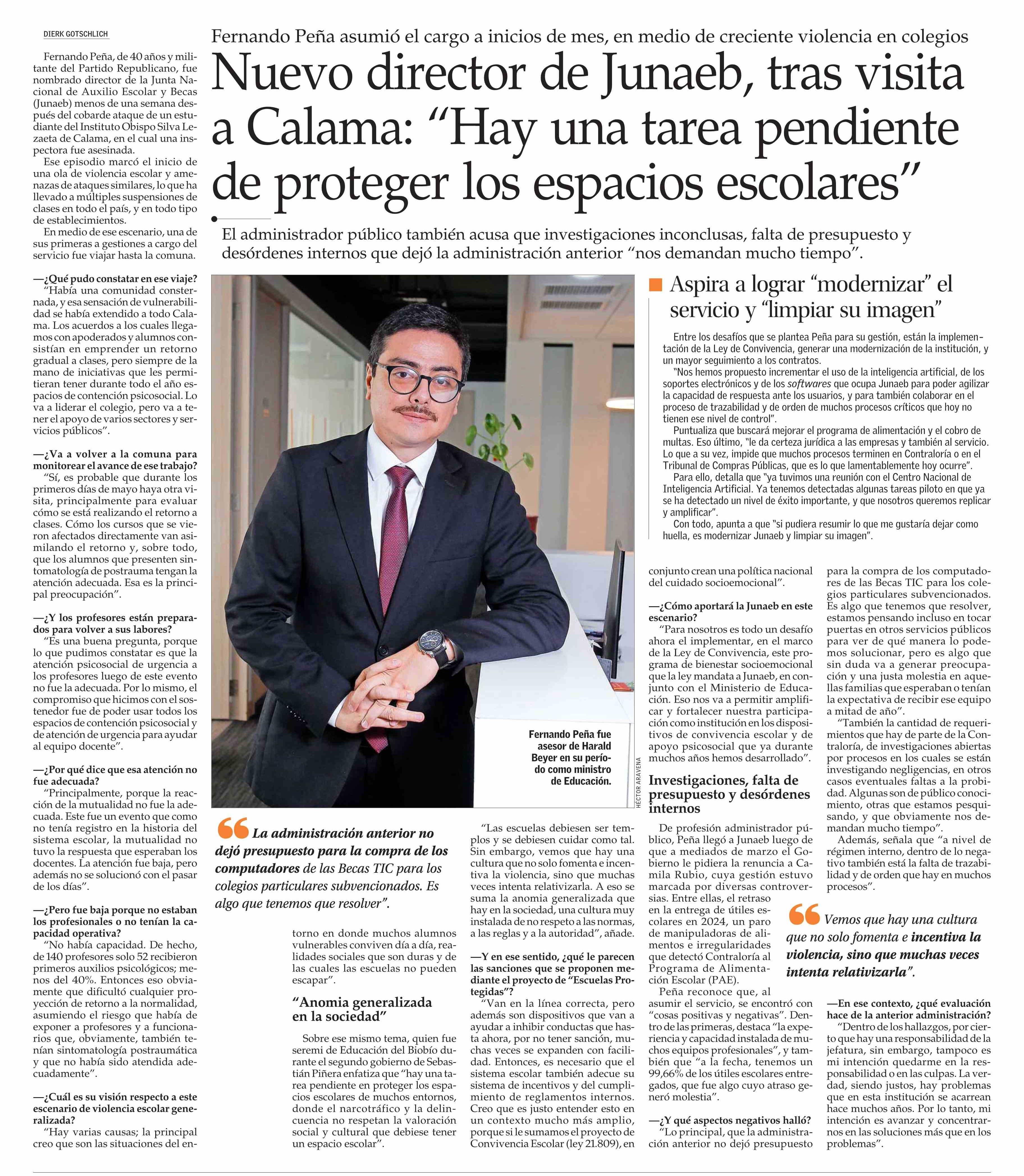 Título: Nuevo director de Junaeb, tras visita a Calama: “Hay una tarea pendiente de proteger los espacios escolares”