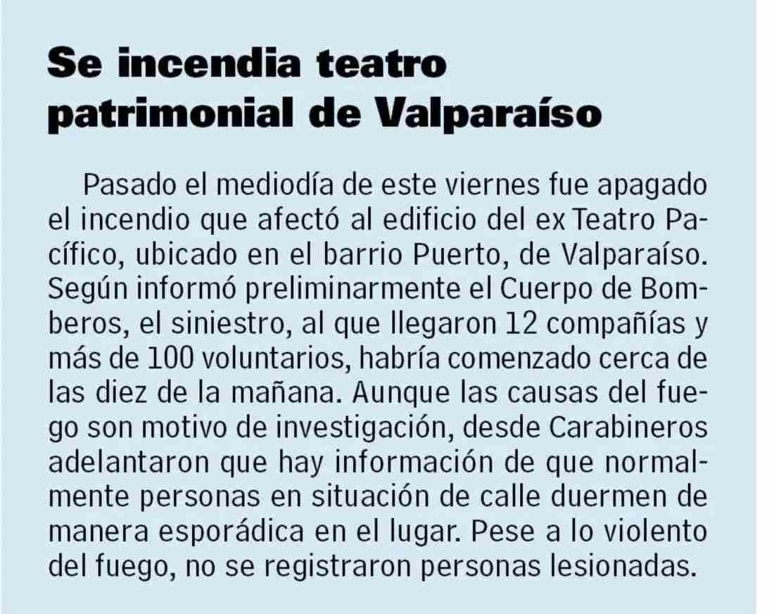 Se incendia teatro patrimonial de Valparaíso