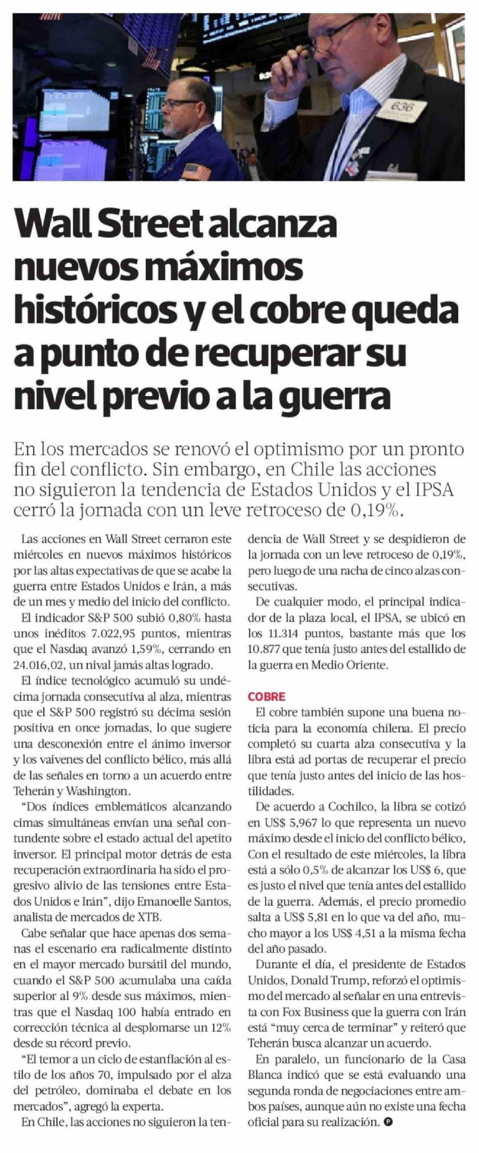 Wall Street alcanza nuevos máximos históricos y el cobre queda a punto de recuperar su nivel previo a la guerra