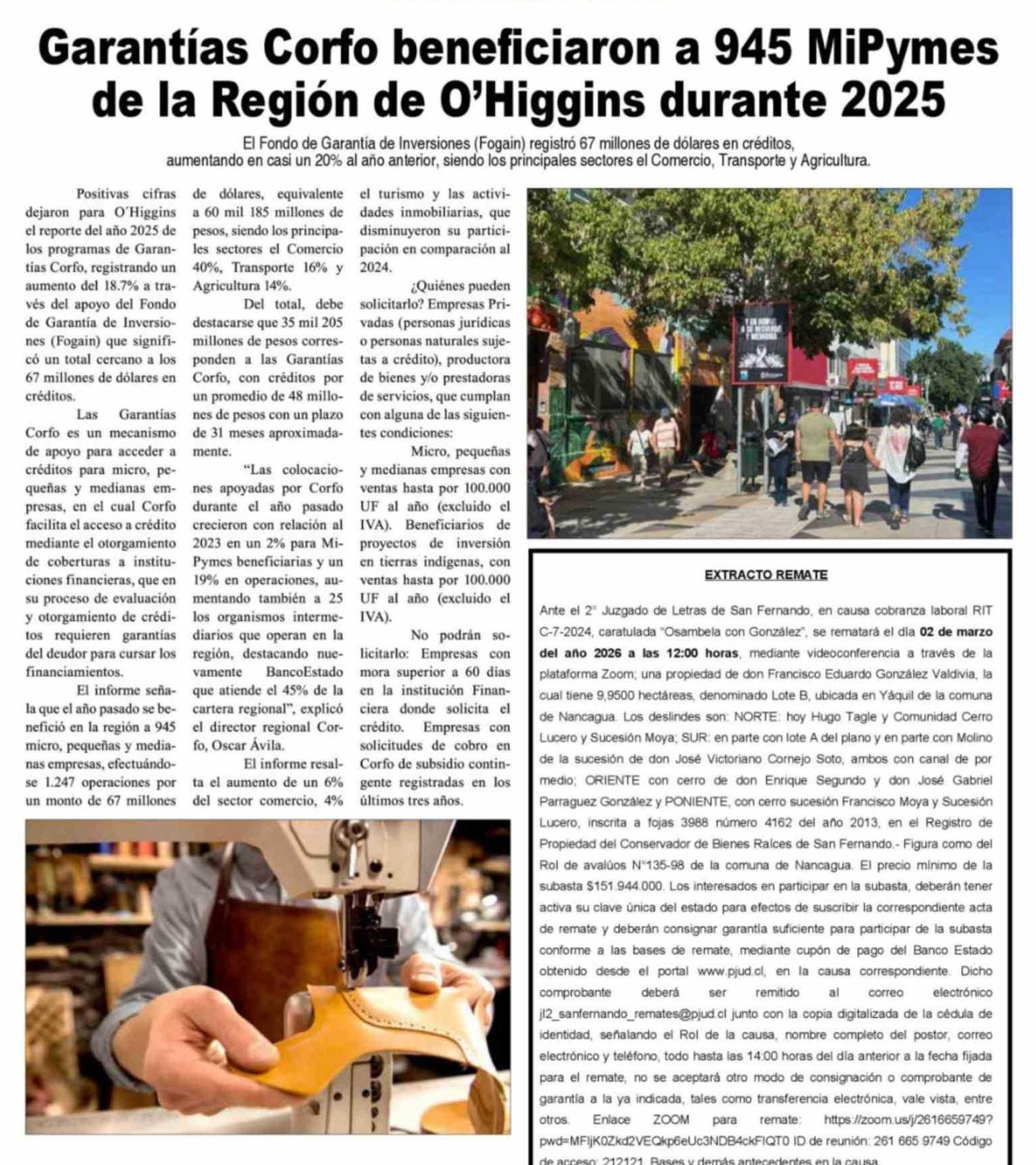 Garantías Corfo beneficiaron a 945 MiPymes de la Región de O'Higgins durante 2025