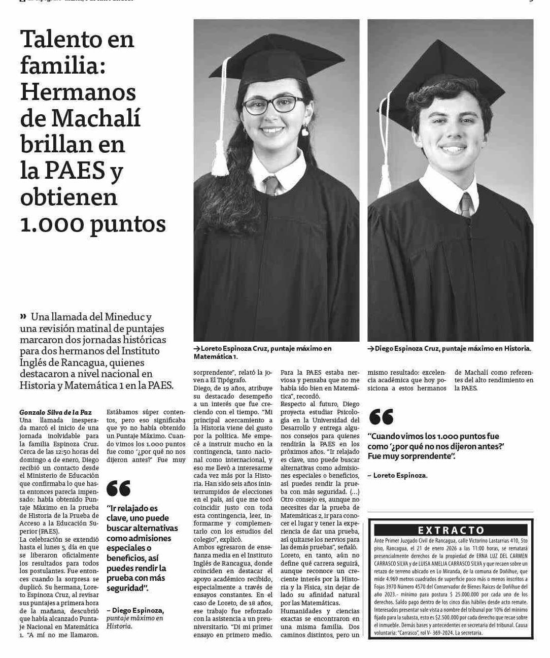 Talento en familia: Hermanos de Machalí brillan en la PAES y obtienen 1.000 puntos
