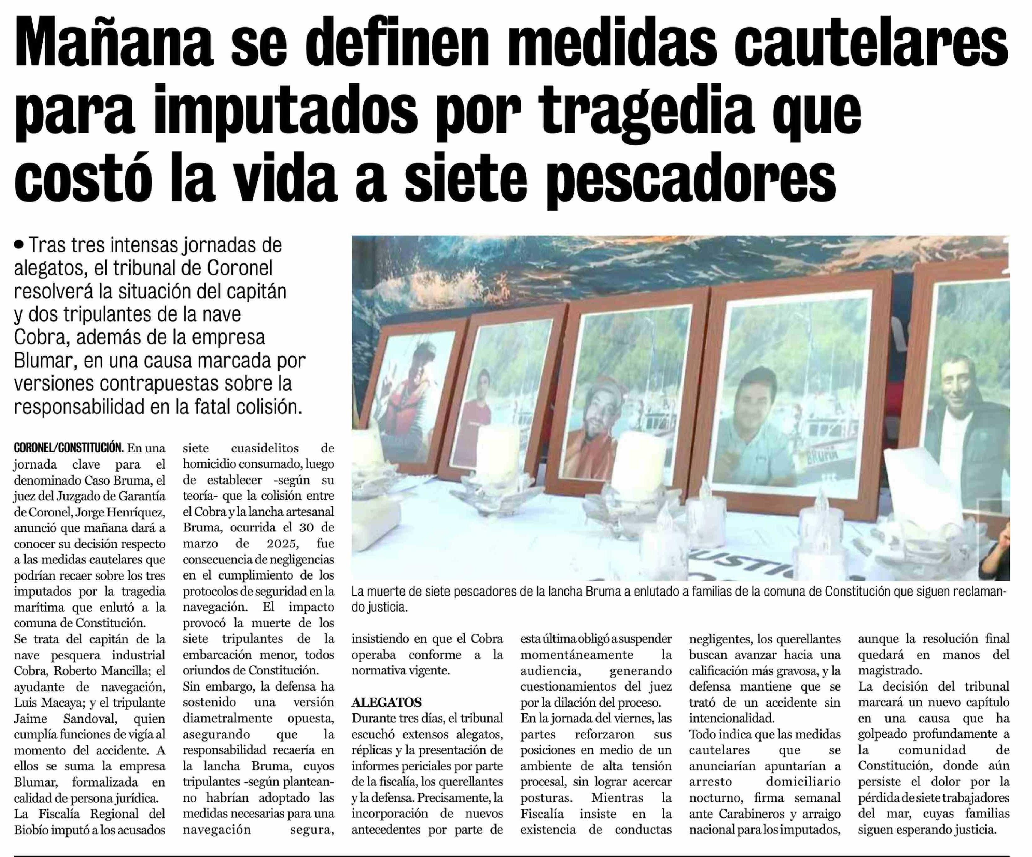 Mañana se definen medidas cautelares para imputados por tragedia que costó la vida a siete pescadores