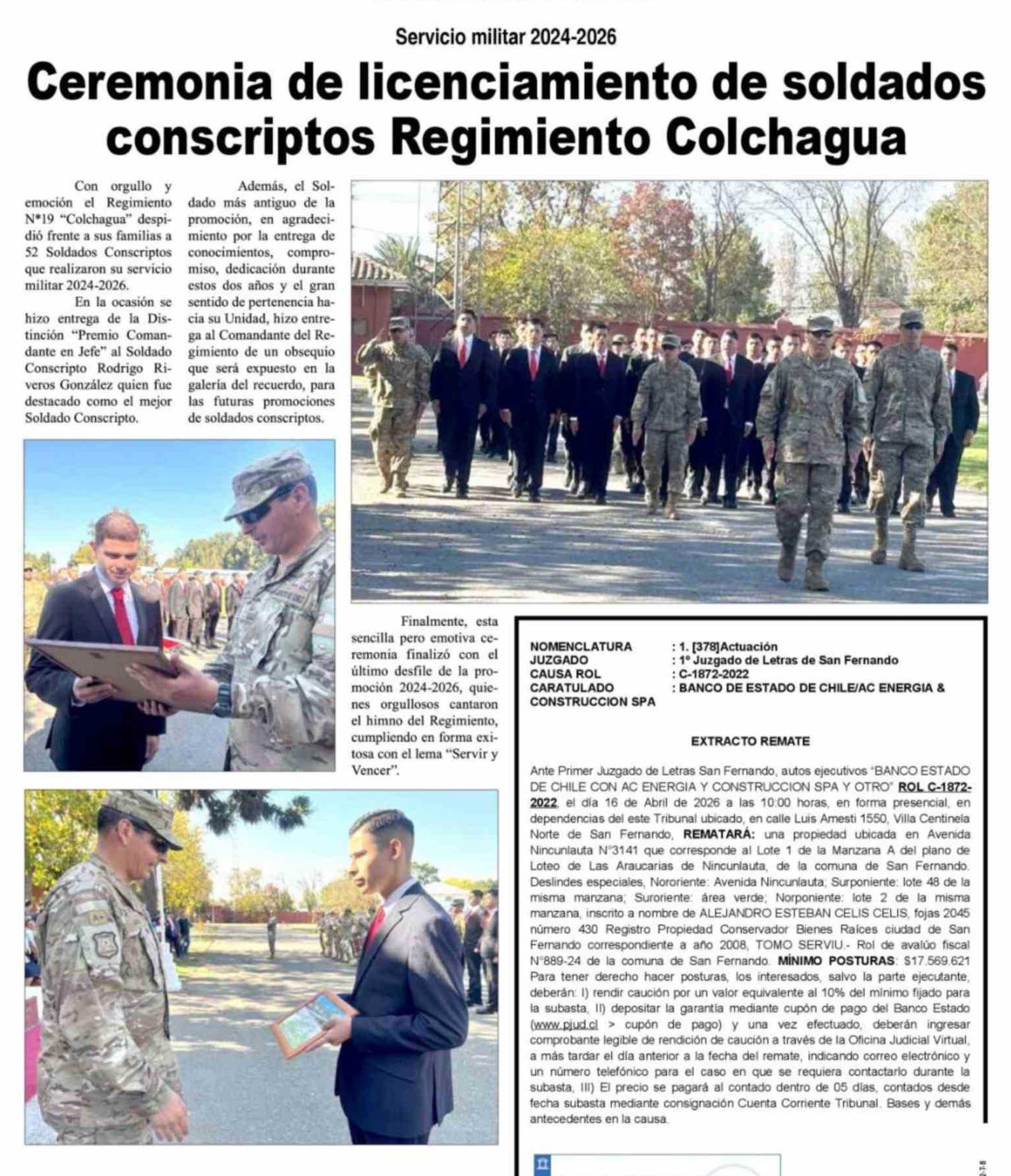 Ceremonia de licenciamiento de soldados conscriptos Regimiento Colchagua