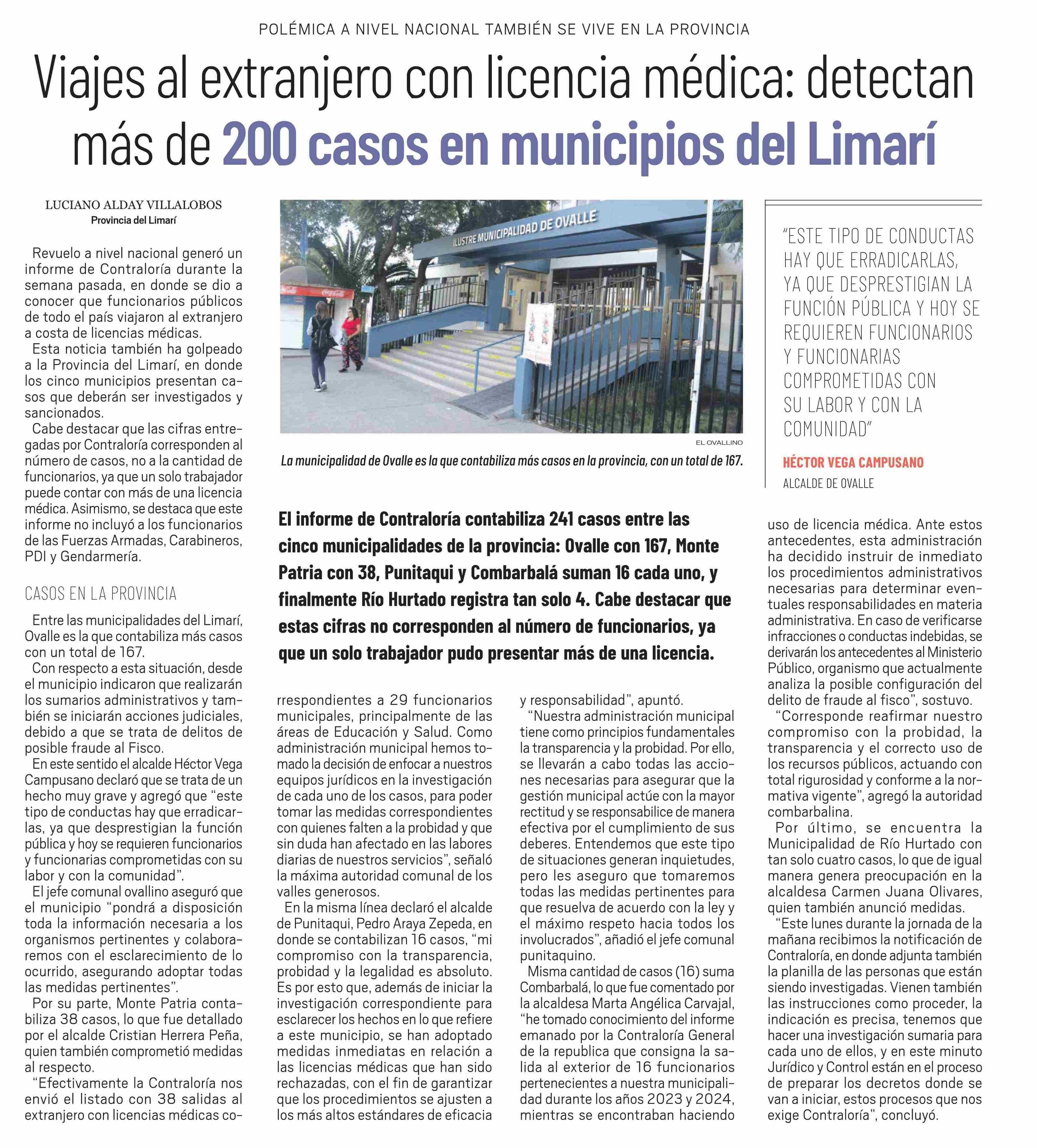 Viajes al extranjero con licencia médica: detectan más de 200 casos en municipios del Limarí