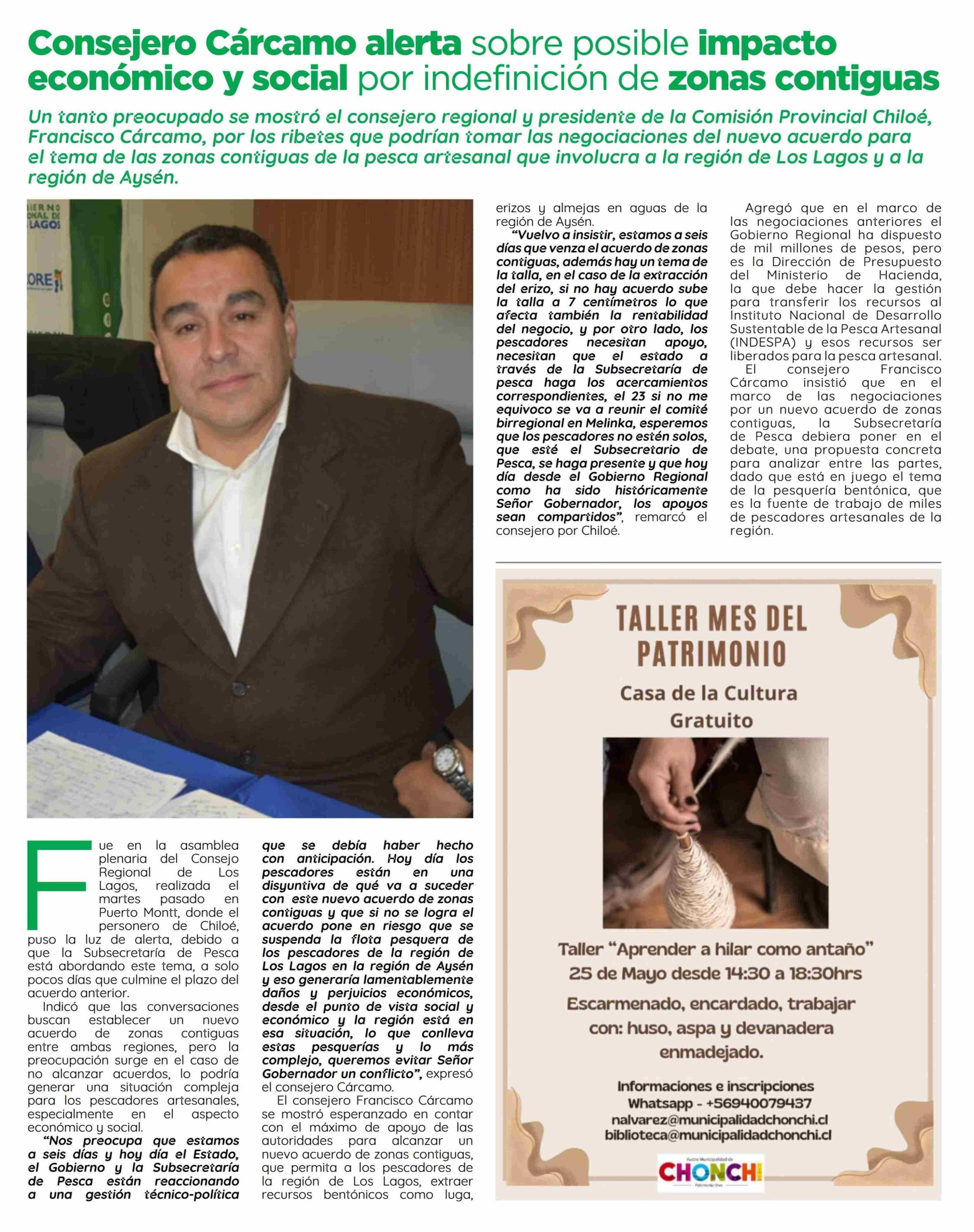 Consejero Cárcamo alerta sobre posible impacto económico y social por indefinicián de zonas contiguas