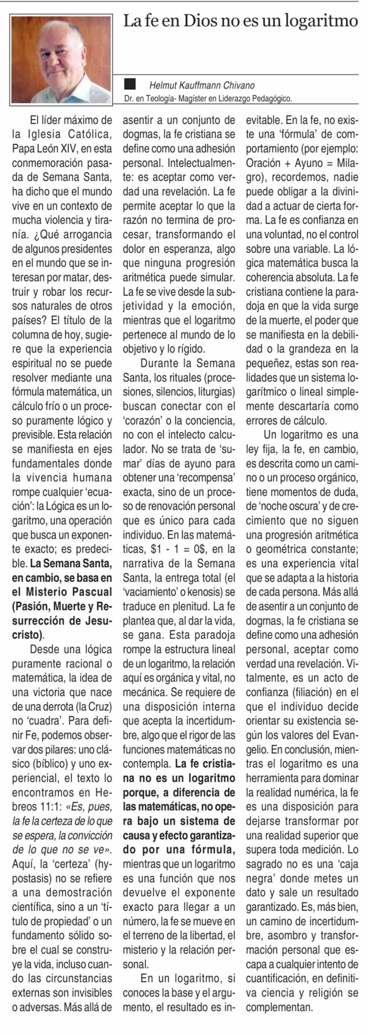 Columnas de Opinión: La fe en Dios no es un logaritmo