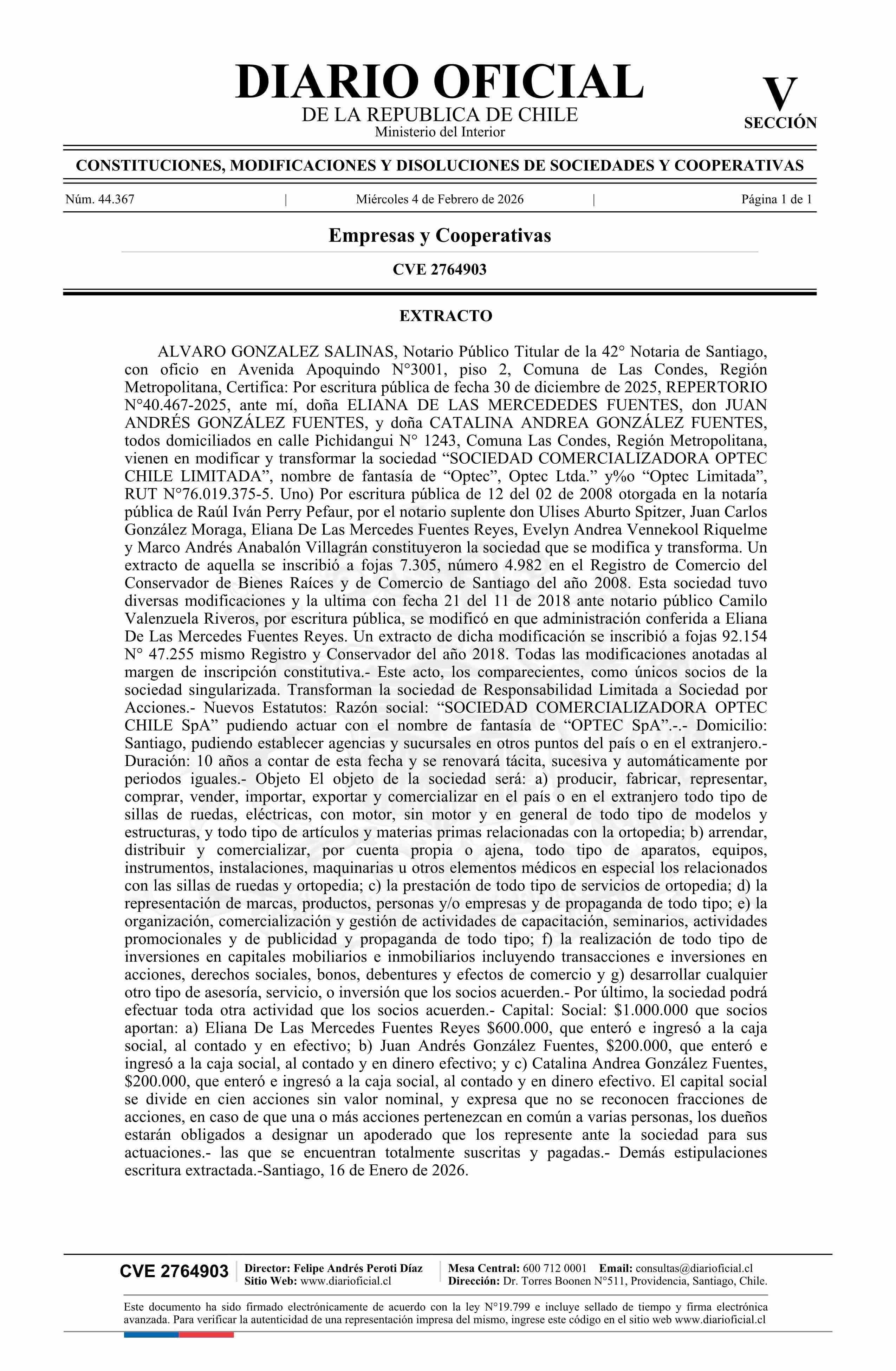 SOCIEDAD COMERCIALIZADORA OPTEC CHILE LIMITADA 76.019.375-5*