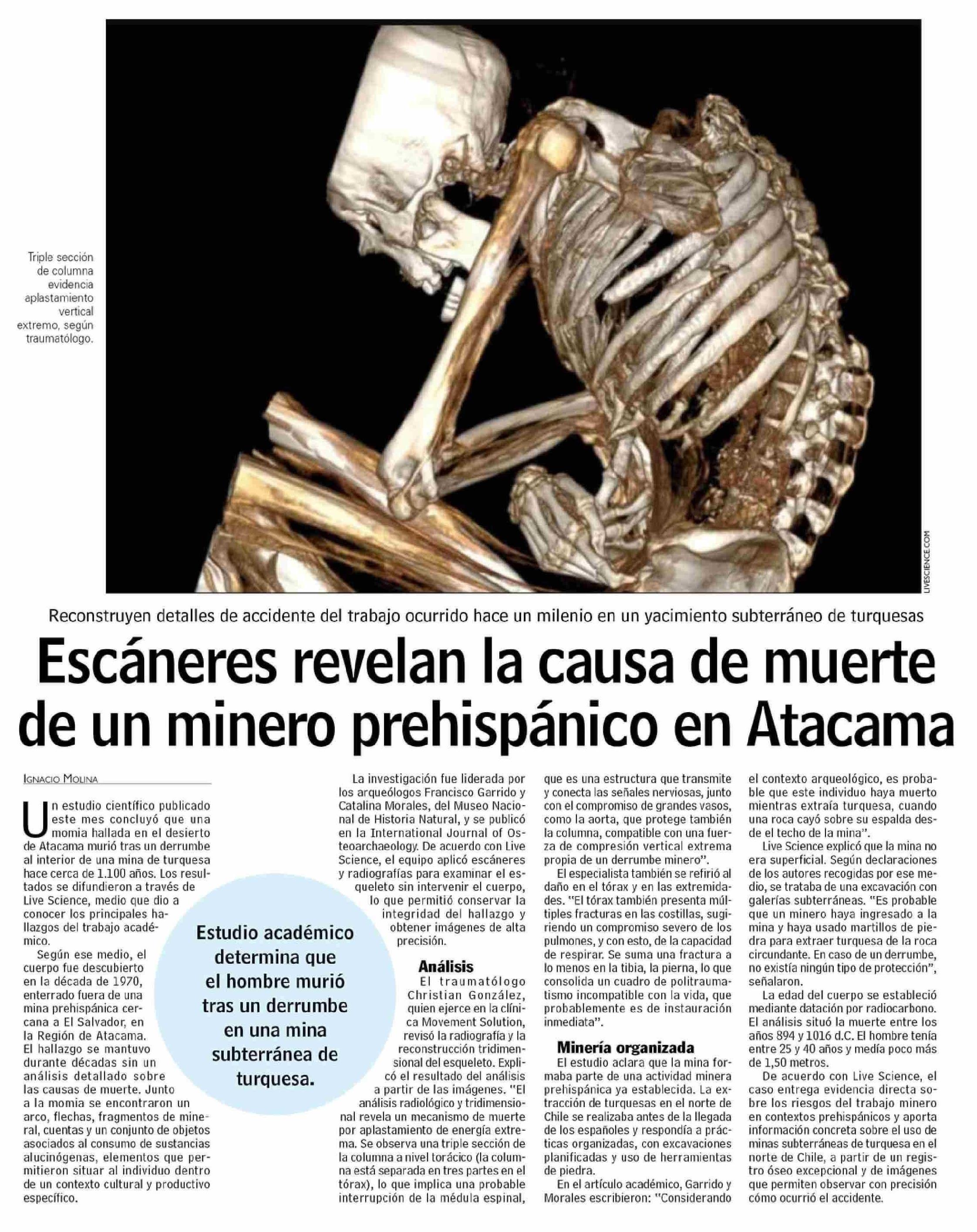 Escáneres revelan la causa de muerte de un minero prehispánico en Atacama