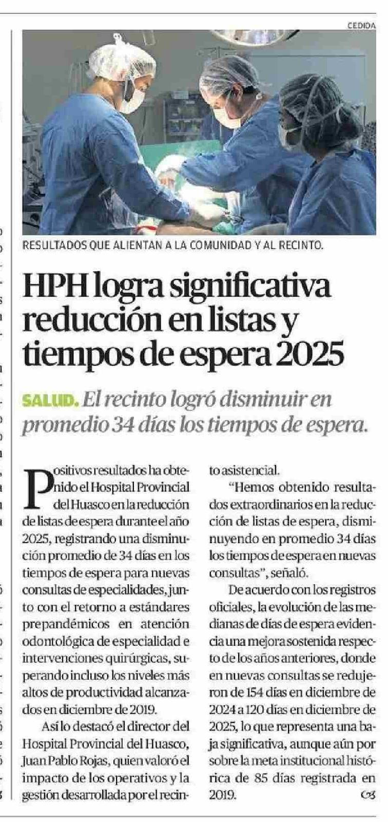 HPH logra significativa reducción en listas y tiempos de espera 2025