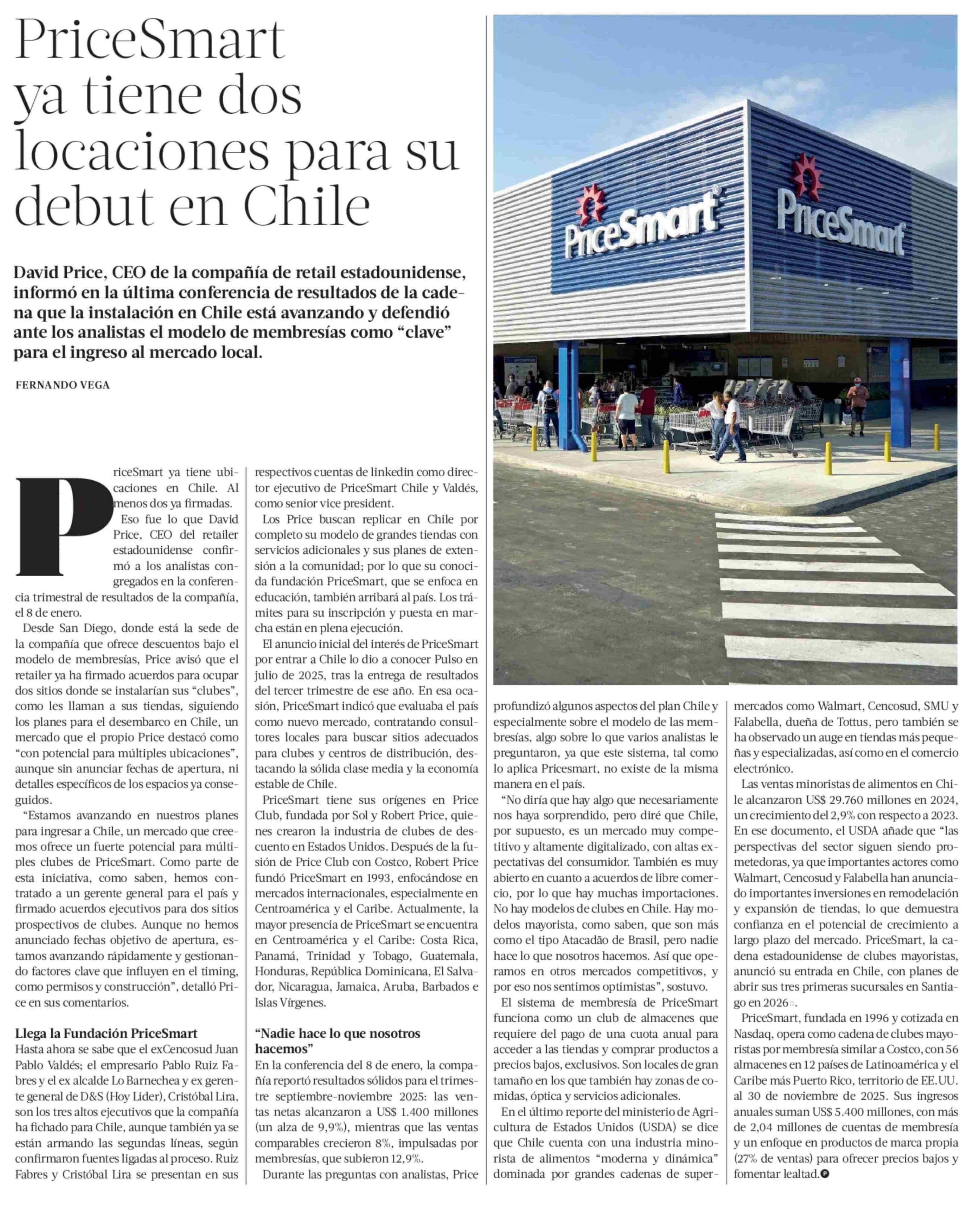PriceSmart ya tiene dos locaciones para su debut en Chile