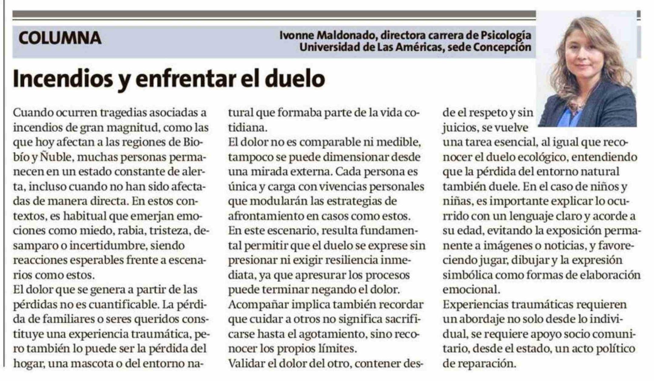 Columnas de Opinión: Incendios y enfrentar el duelo