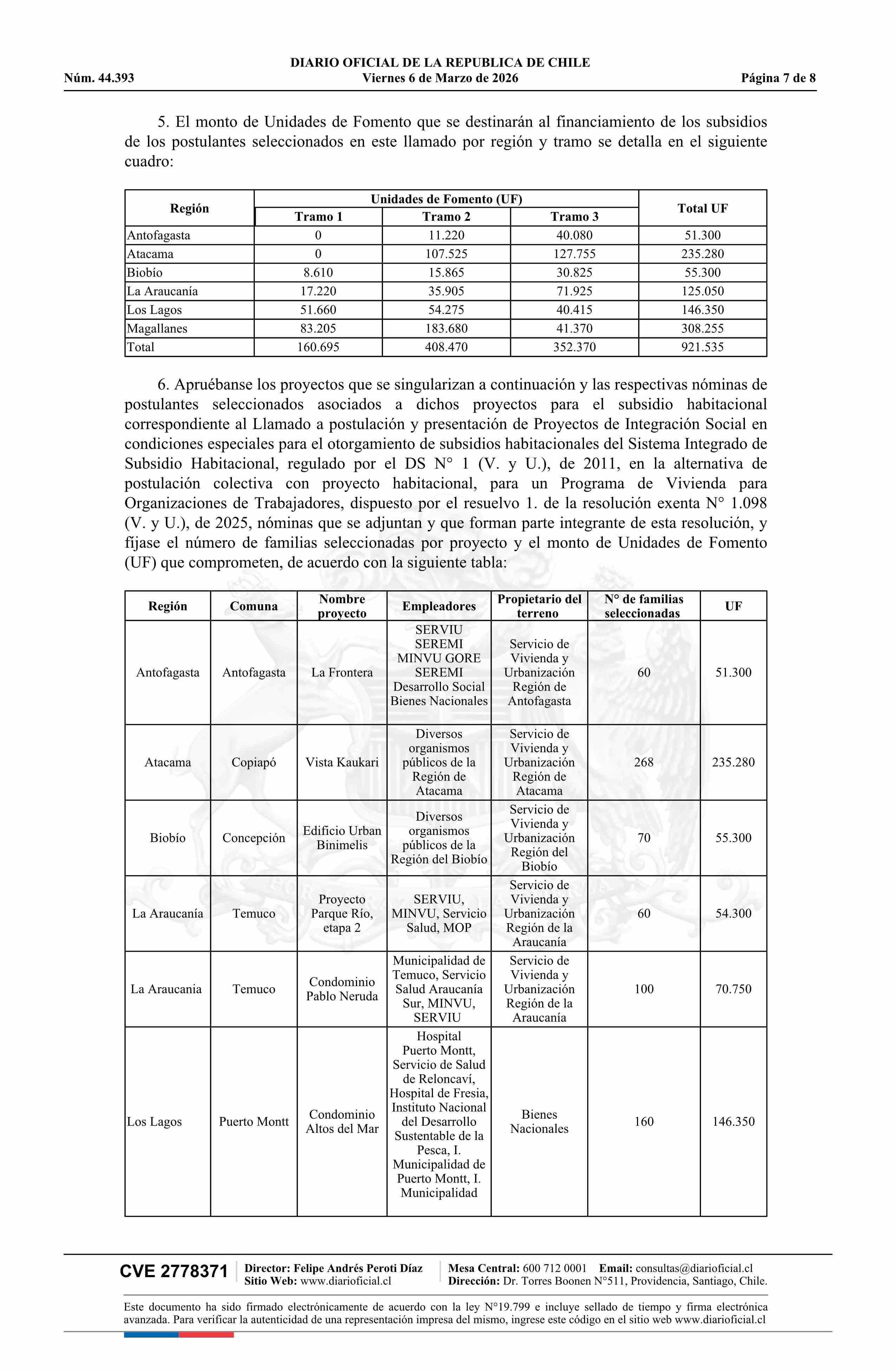 Título: Resolución exenta número 324, de 2026.- Aprueba selección del llamado 2025 a postulación y presentación de proyectos de integración social en condiciones especiales para el otorgamiento de subsidios habitacionales del Sistema Integrado de Subsidio Habitacional, regulado por el decreto N° 1, de 2011,